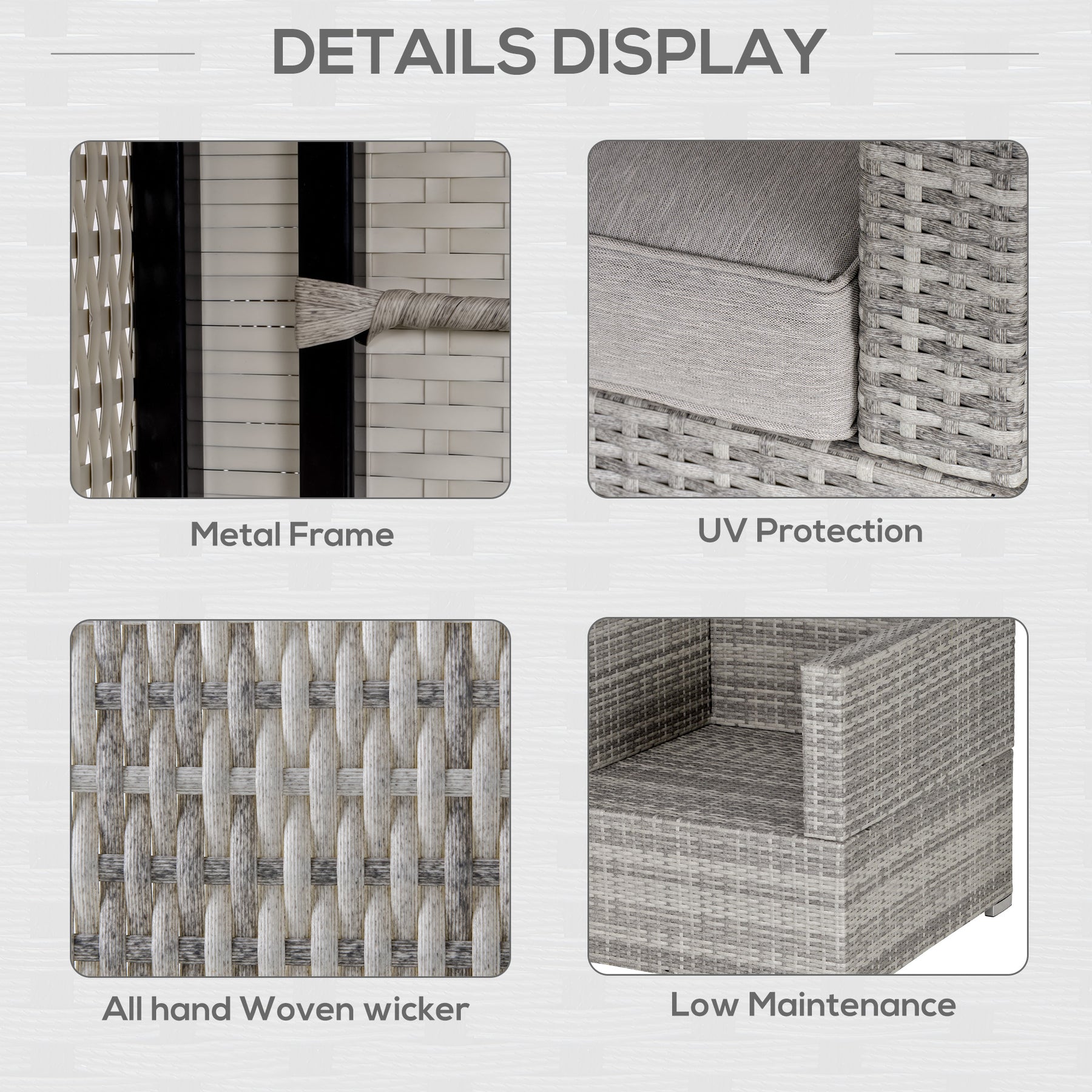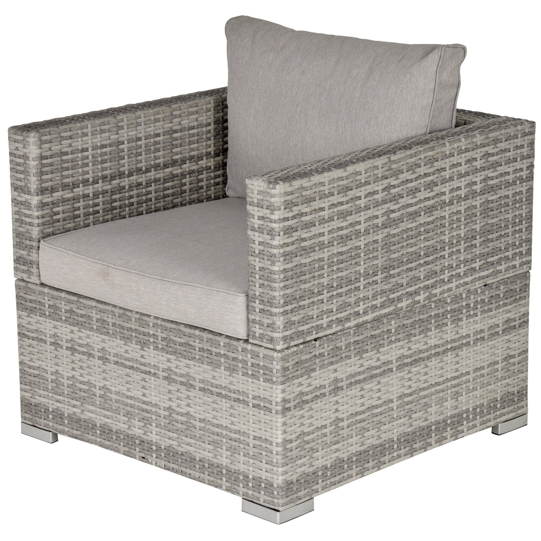 MCL Single Seater Rattan Chair Sofa with Padded Cushions, All-Weather PE Wicker Weave Garden Armchair with Armrests, Grey