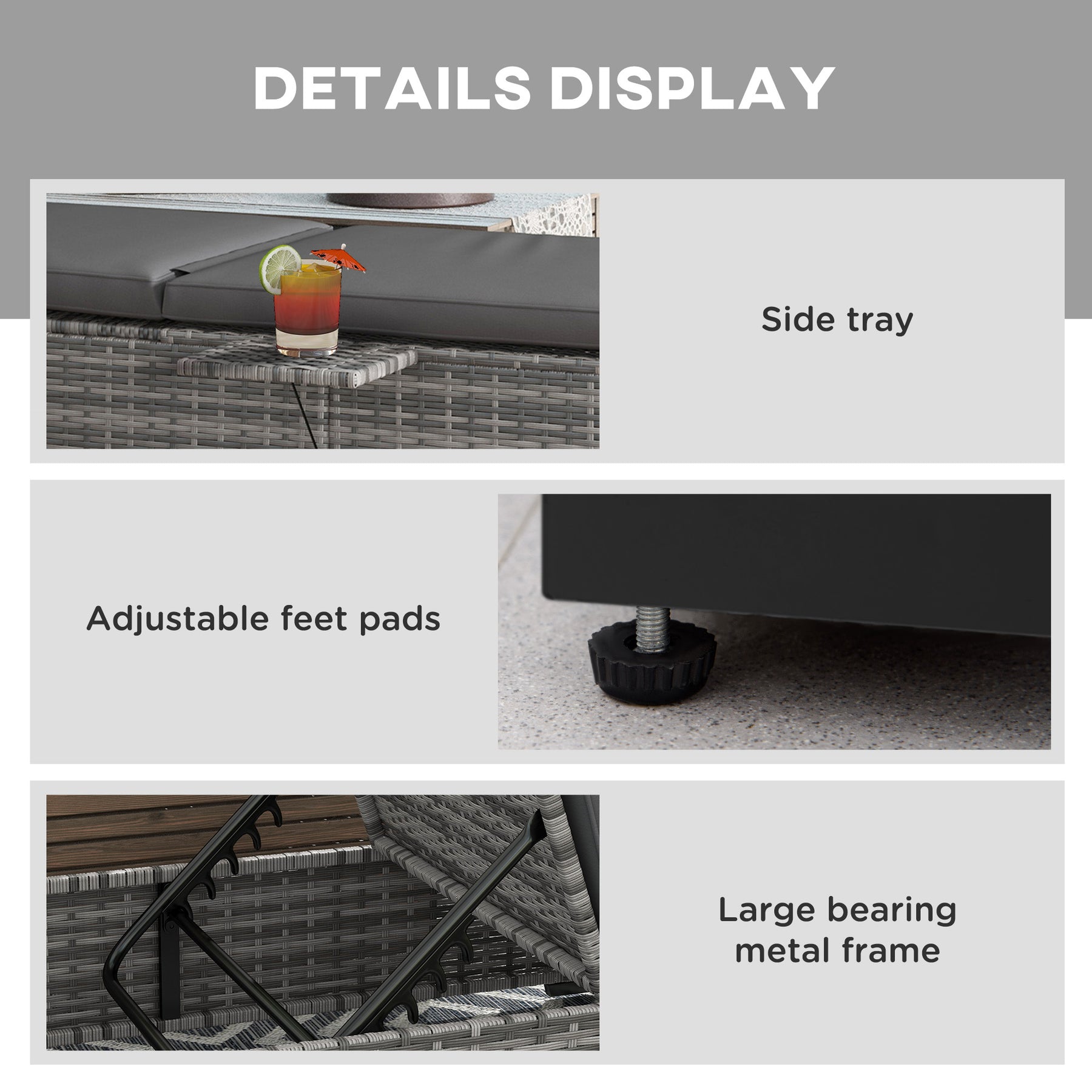 Relax in your garden with this rattan lounger, Enjoy customisable comfort with the five-position back. The soft padded cushion keeps you comfortable. The side table offers a handy holding spot, so you don't have to move once seated and comfortable. Sun lounger has galvanised steel frame with powder coating means a strong core, wrapped in stylish and protective plastic wicker.