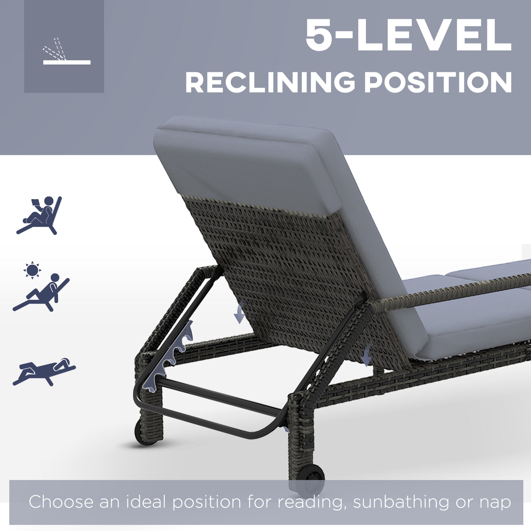 This sun lounger is great for all-day relaxing. With a longline padded cushion and five-position back, this is a comfortable piece that can be customised to your choice. A metal frame for a strong core, wrapped in plastic wicker - protecting the metal whilst creating a stylish garden look. Complete with wheels to move around easily.