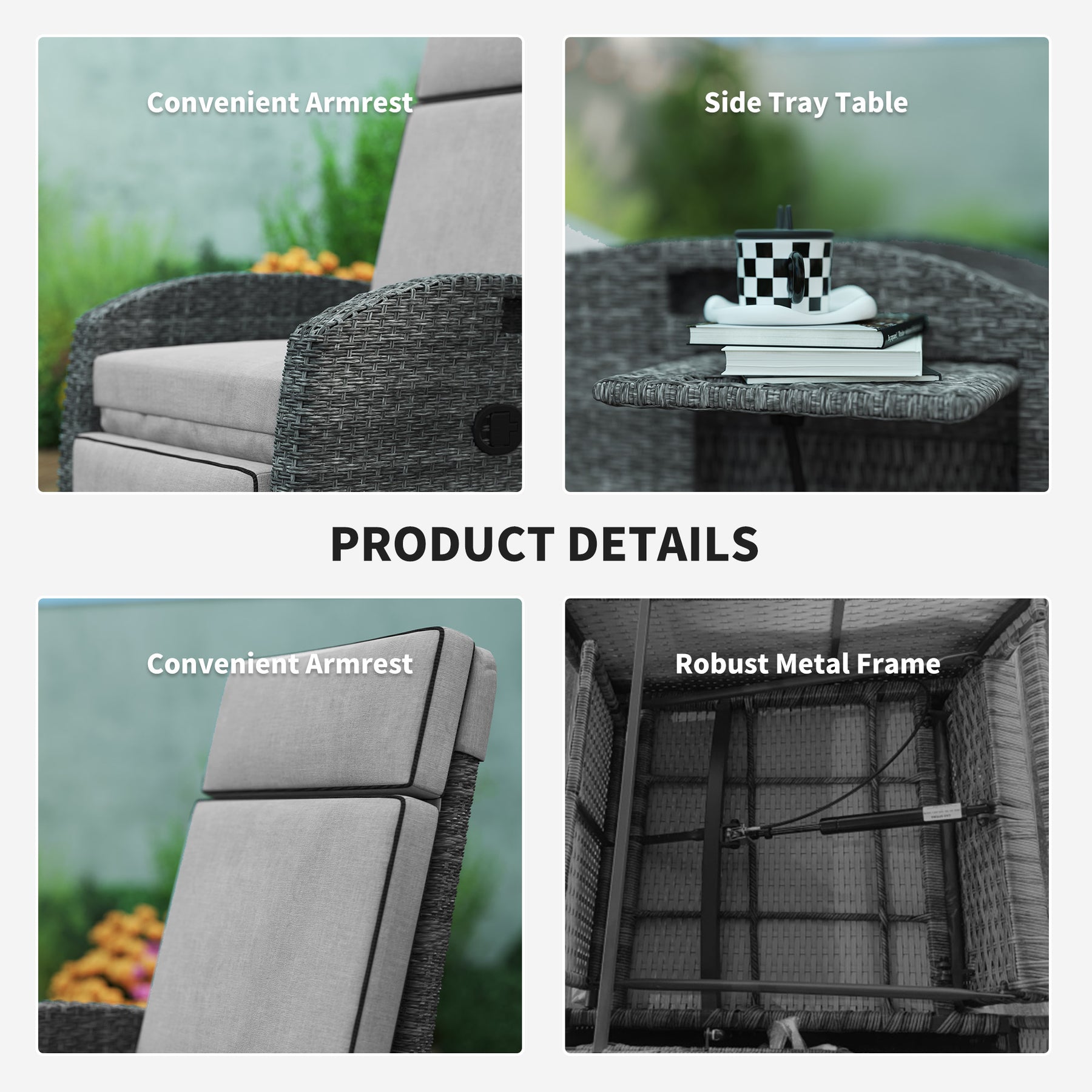 Sink in and relax to an angle you want outdoors, thanks to this outdoor recliner chair. The back goes back to a maximum 140° angle. The padded cushion allows you to sink in comfortably. With a powder coated steel frame, this rattan recliner will support you properly, complete with a handy flip-up side tray.