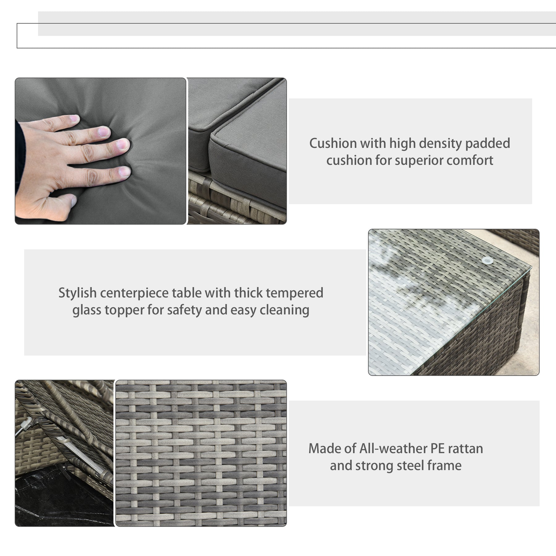 Rattan Garden Furniture Outdoor Patio 5 Piece Wicker Weave Sofa Set with Storage, Cushioned, 3-Seater Sofa + 2 Single Chairs + Foot Stool + Coffee Table