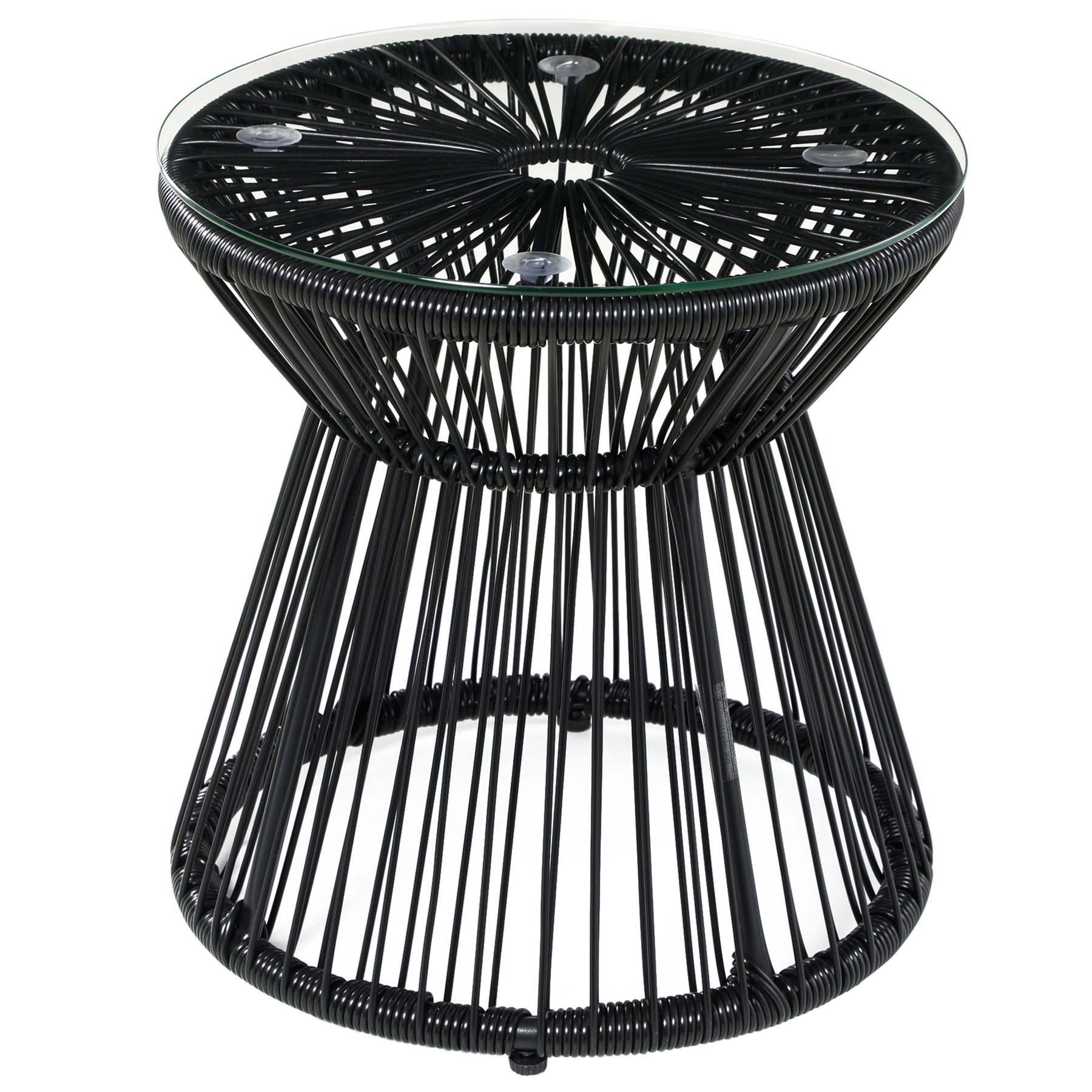 This garden table is twist on your standard rattan designs: coming in a wicker string design, this is the great update for your outdoors. A powder coated metal frame means a strong core, with the large base ensuring balance. Comes with a 5mm tempered glass tabletop for a sleek and safe holding place.