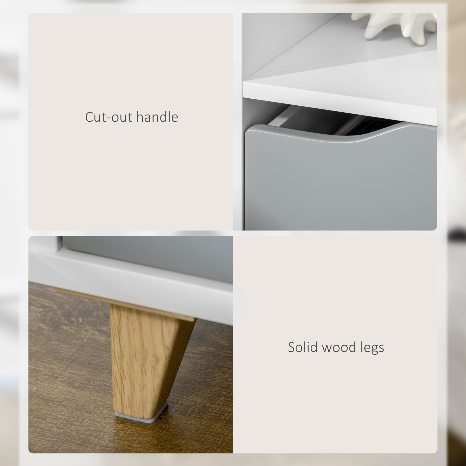 Need some more storage in your bedroom and beyond? This MCL nightstand is here to help. It comes in a simple design, with a white frame and grey coloured drawer - pleasant on the eye and easy to bring into interior design space. Features a bottom drawer and top shelf - plenty of storage room. Complete with four bottom peg feet to elevate and balance.