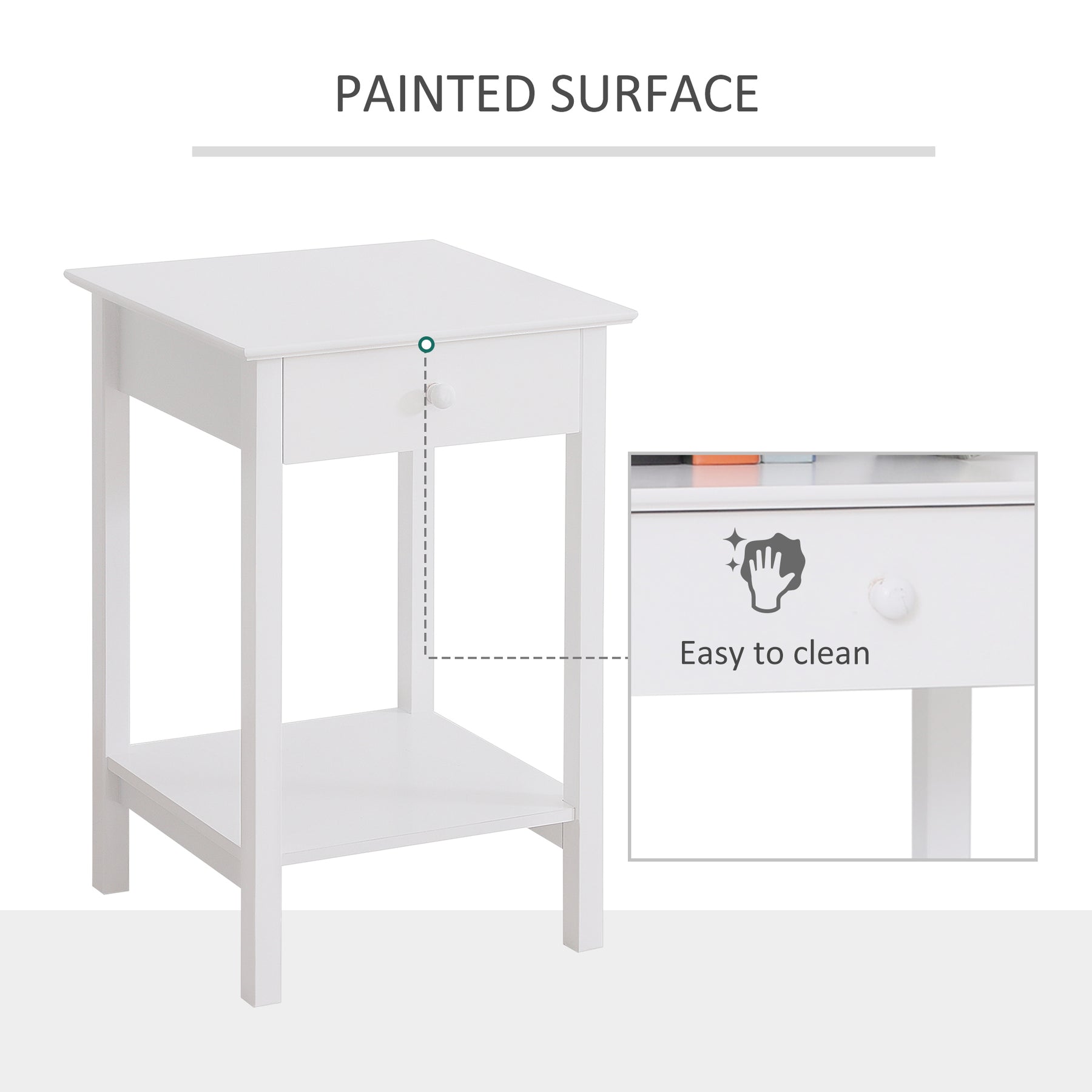 MCL White Bedside Table, Wooden Side Table, Nightstand, Bedside Cabinet with Drawer and Storage Shelf for Bedroom and Living Room