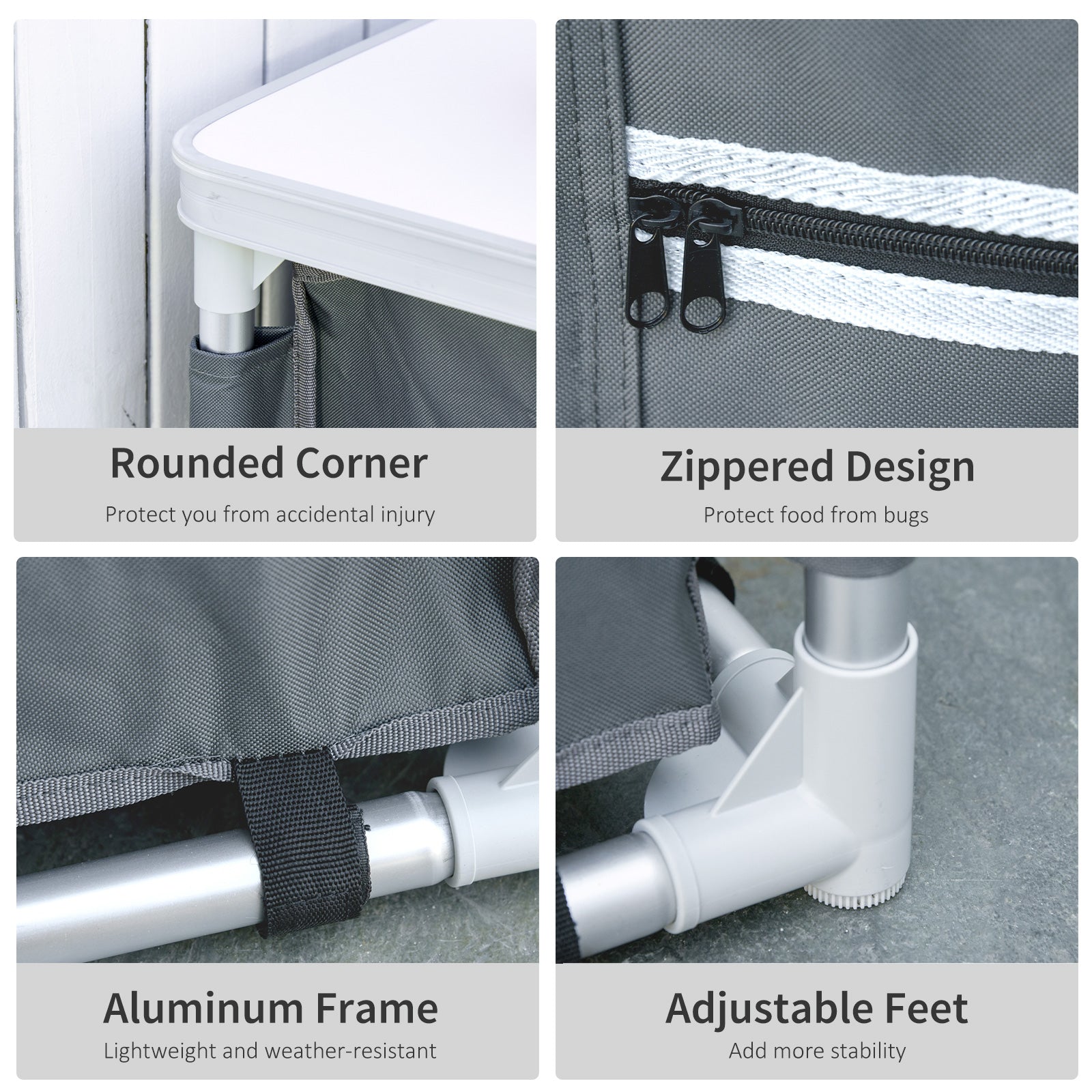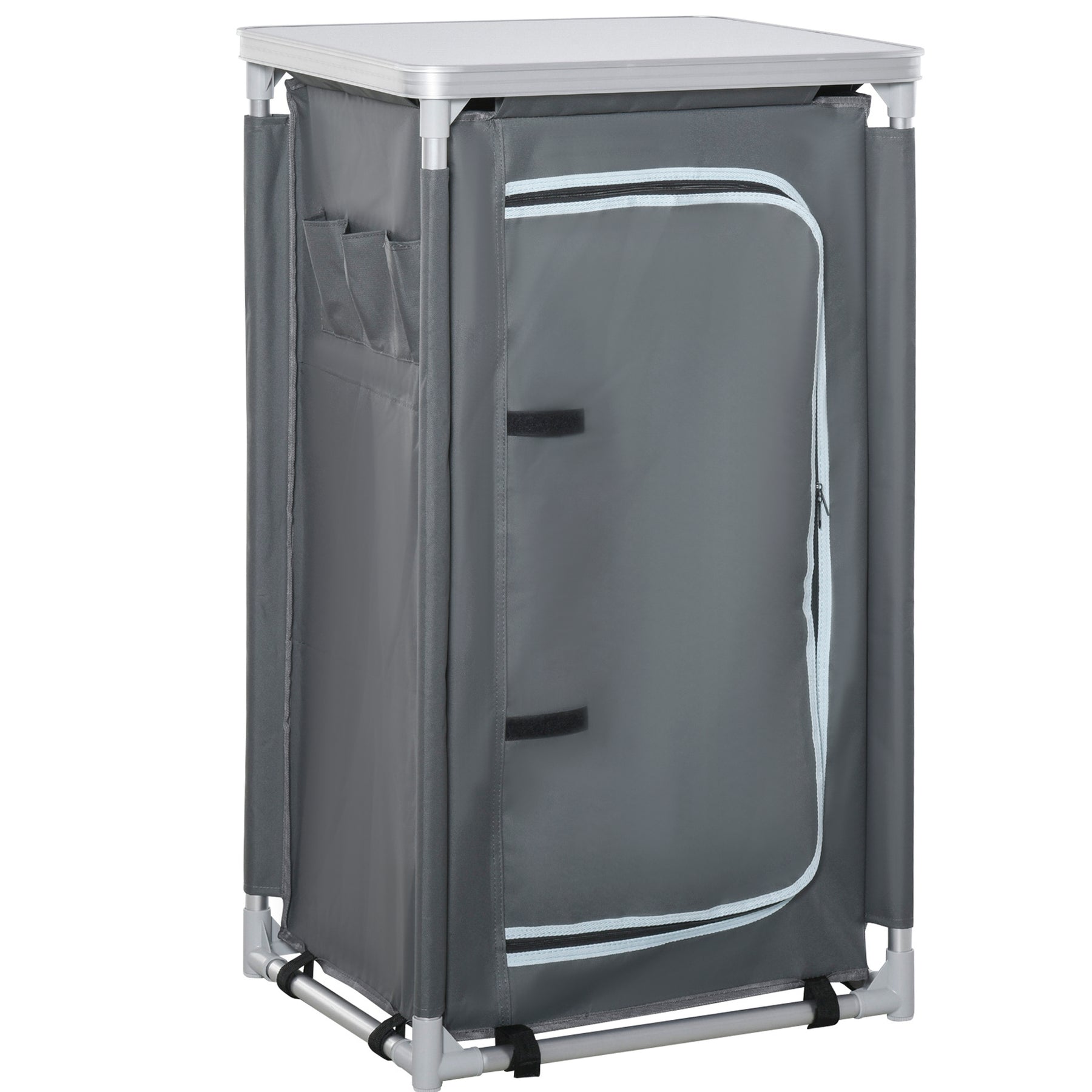 MCL 3-Shelf Camping Cupboard Camping Kitchen Station Cook Table, Storage Organiser for BBQ Party Picnics Backyards with Carrying Bag, Grey