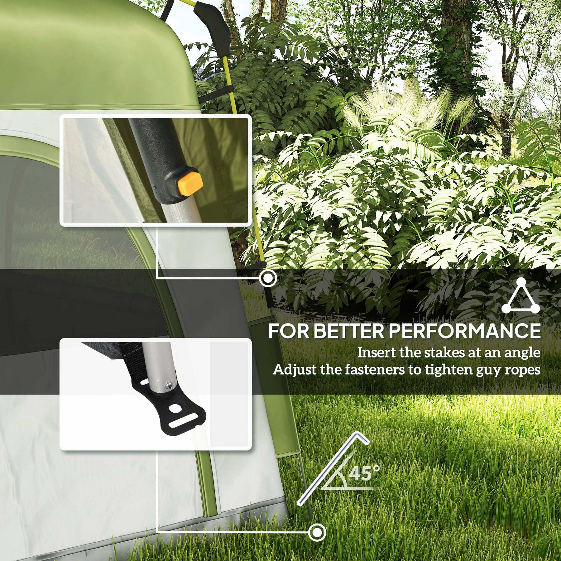 • Do not use in heavy weather - always pin to ground with supplied metal stakes