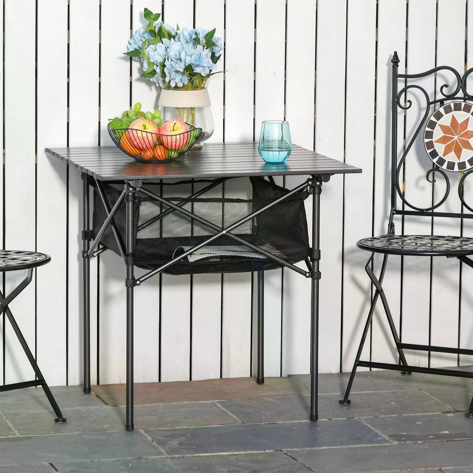 MCL Portable Camping Table w/ Mesh Bag & Steel Frame Hiking Furniture Desk, Silver Black