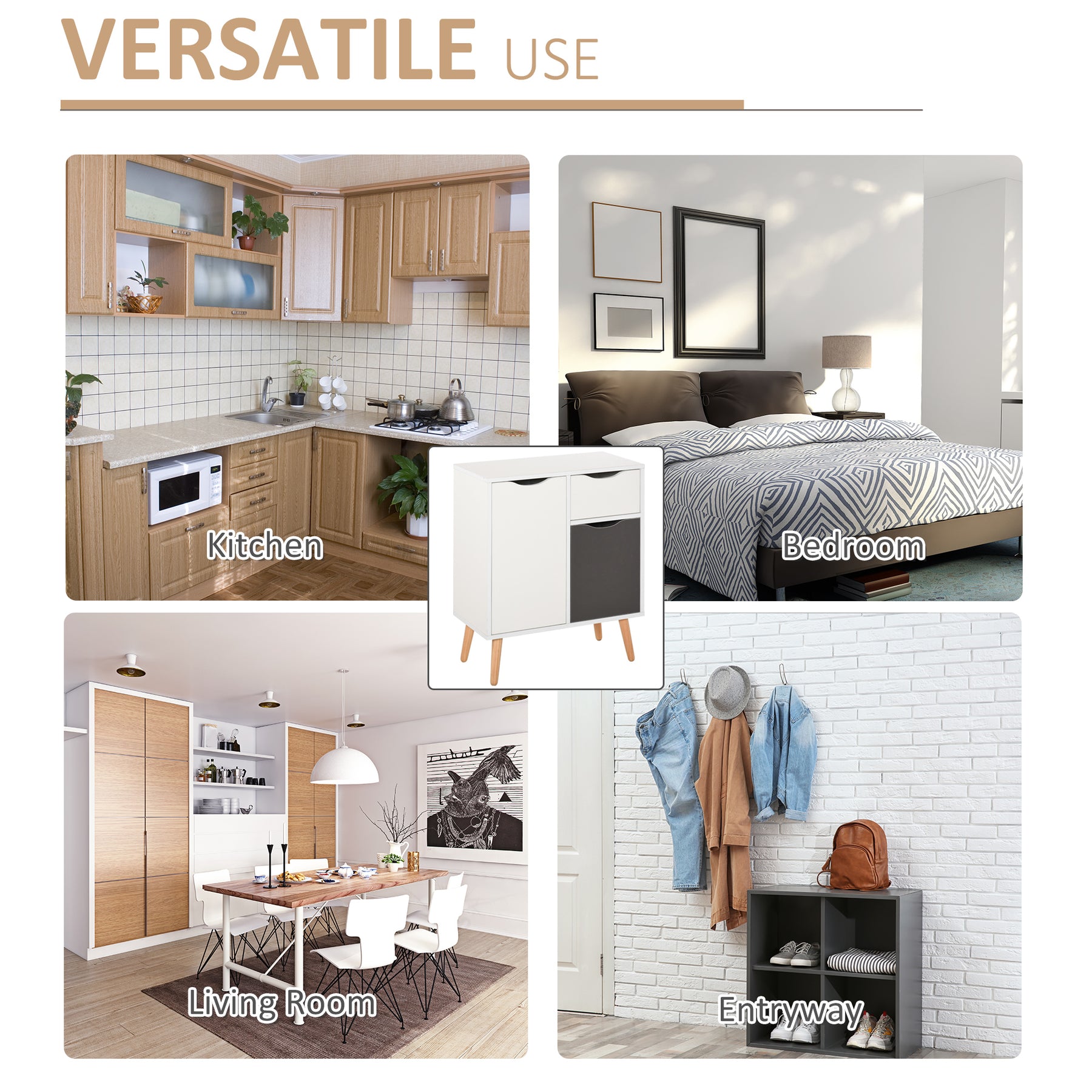 MCL Sideboard Floor Cabinet Storage Cupboard with Drawer and Solid Wood Legs for Bedroom, Living Room, Entryway, Grey