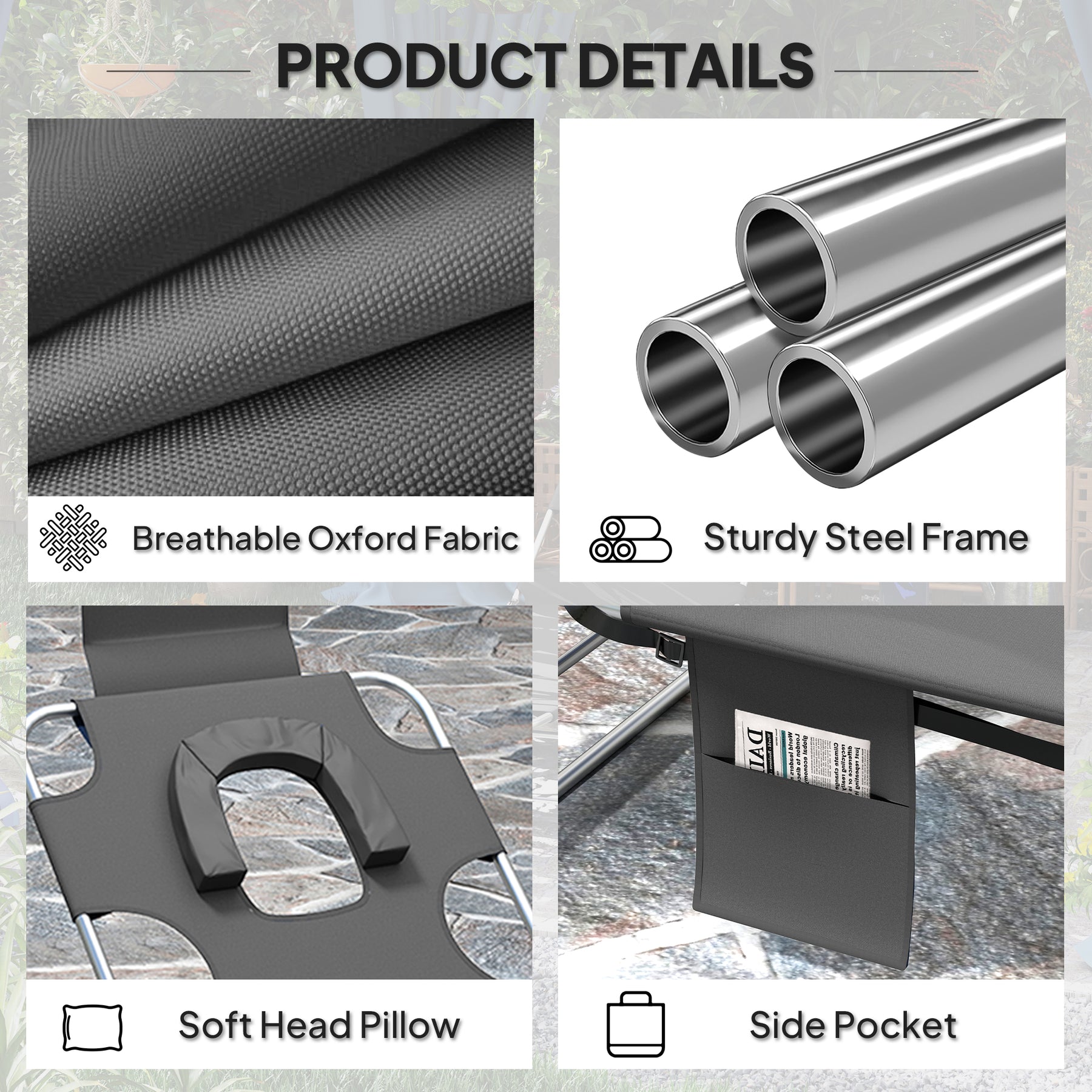 - Each sun lounger is easy to store and transport with folding design