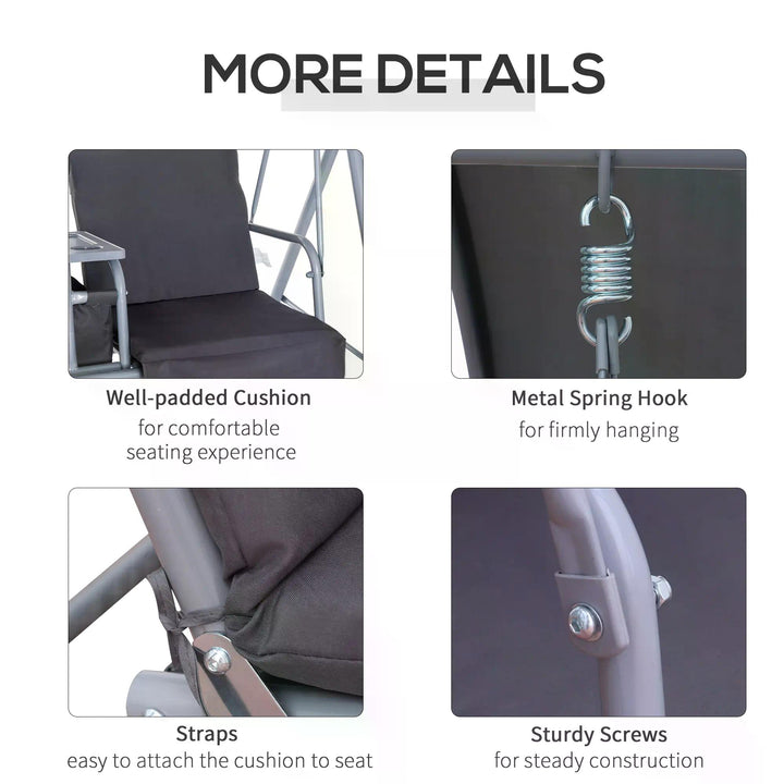 Steel Frame 2-Seater Swing Chair w/ Table Grey
