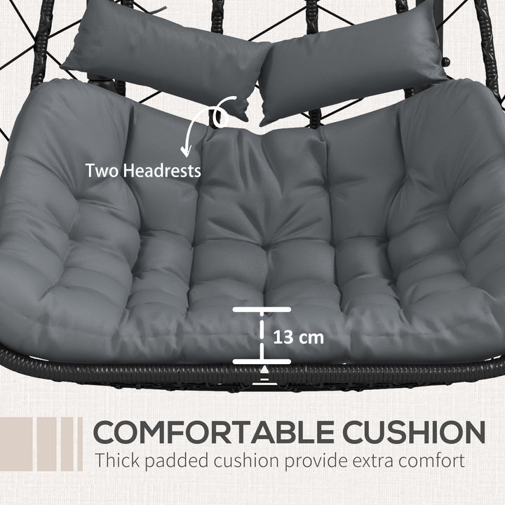 Relax in proper comfort with this hanging egg chair. A powder coated steel frame for a strong core, with the four legs for plenty of balance. Inside, the thick padded seat provides plenty of comfort. Two seater size - relax alone or with company.