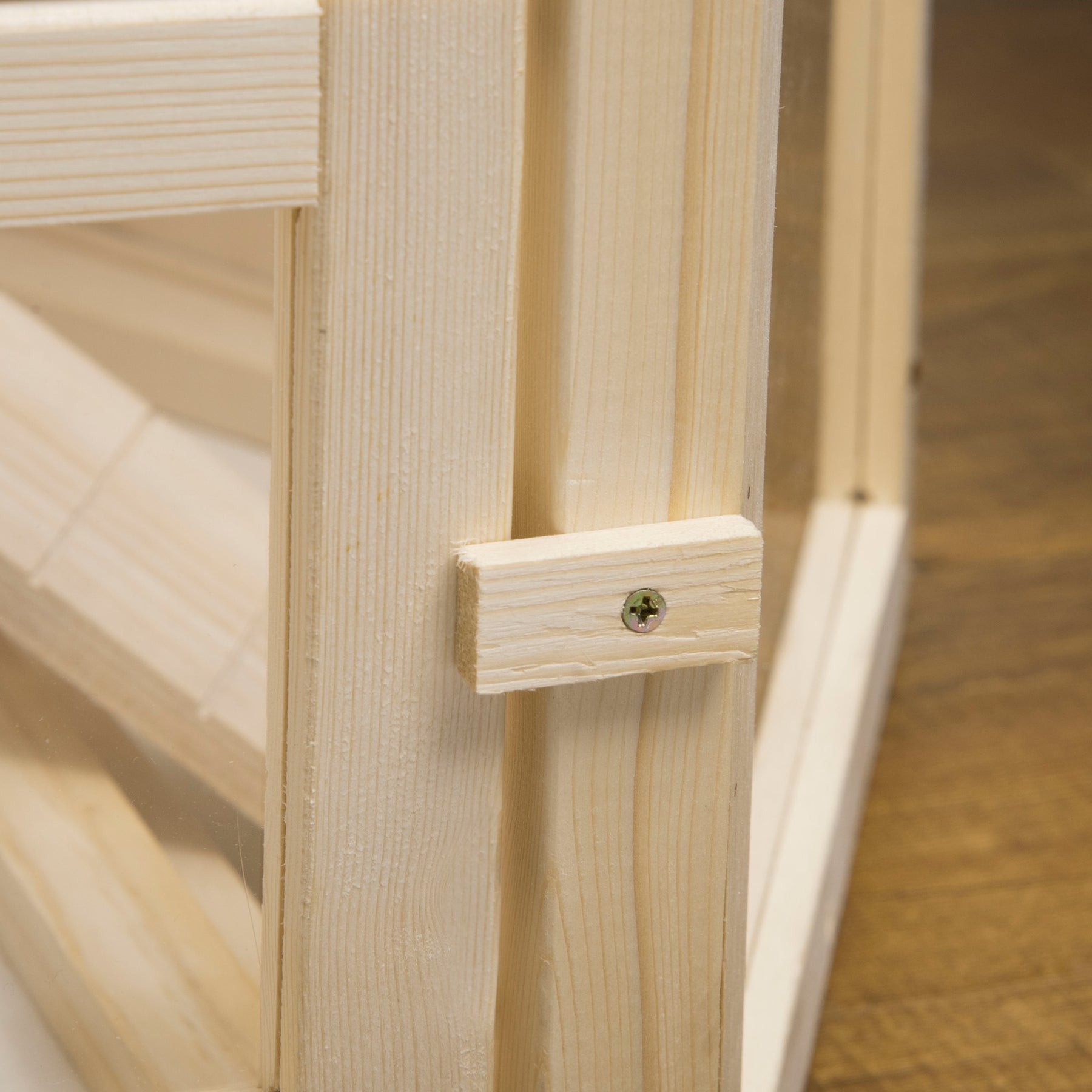 With three tiers, this dwarf hamster cage provides lots of space to roam, play and relax. Small pets will use the ramps to get around easily, whilst the tiny houses provide a place to rest in privacy. Its wooden frame is strong and solid – a reliable home, which can be used daily. With a hinged top, accessing and cleaning the cage is easy – it also keeps their area well ventilated. The raised base stops damp and moisture from seeping through; a cosy home for small pets to thrive.