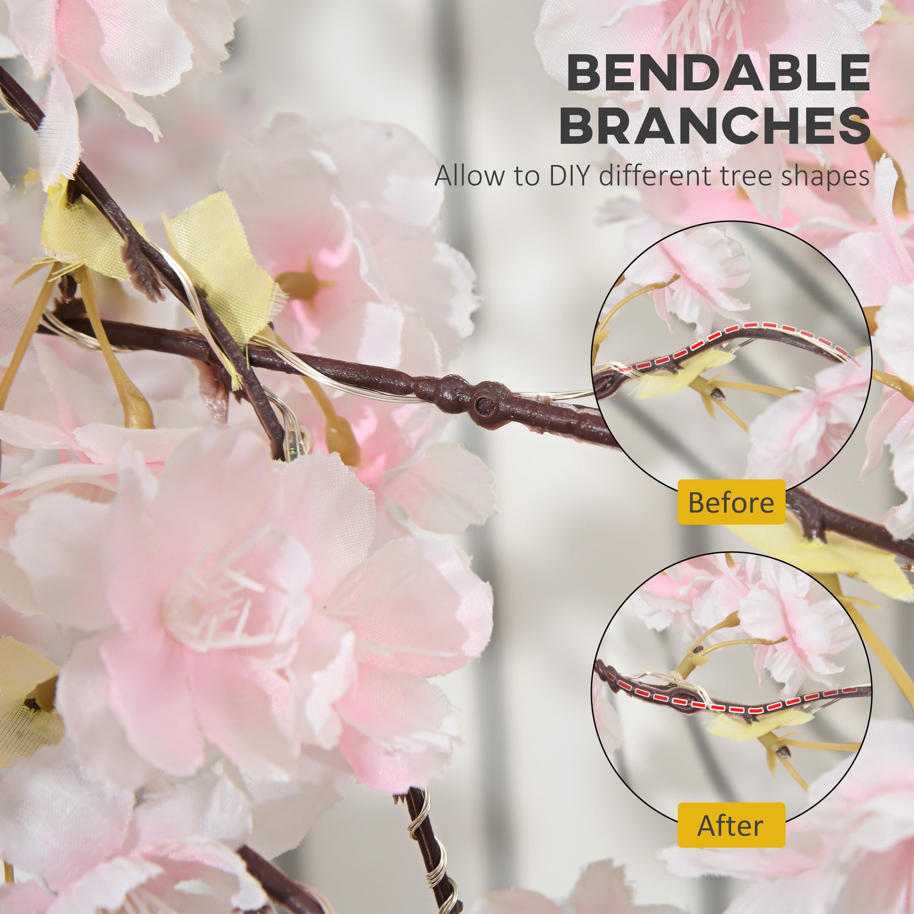 - Bendable branches: fix to a position you want