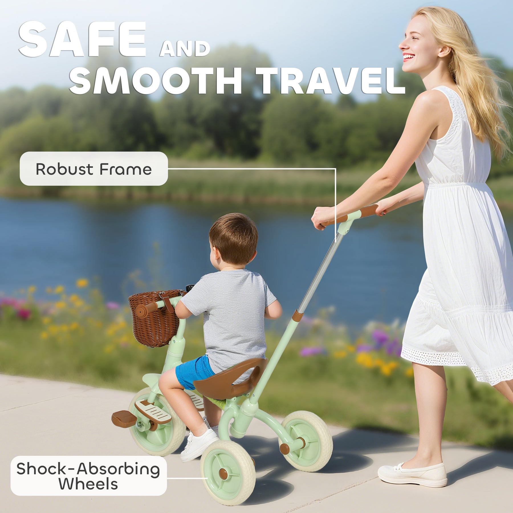 Struggling to keep your baby entertained and safe on walks? Juggling a stroller, toys and a wobbly toddler can turn a fun outing into a stressful chore. The AIYAPLAY trike transforms family strolls into joyful adventures. With a parent push handle for control, this versatile trike provides a secure and comfortable ride, creating precious memories as they grow from passenger to confident pedaler.