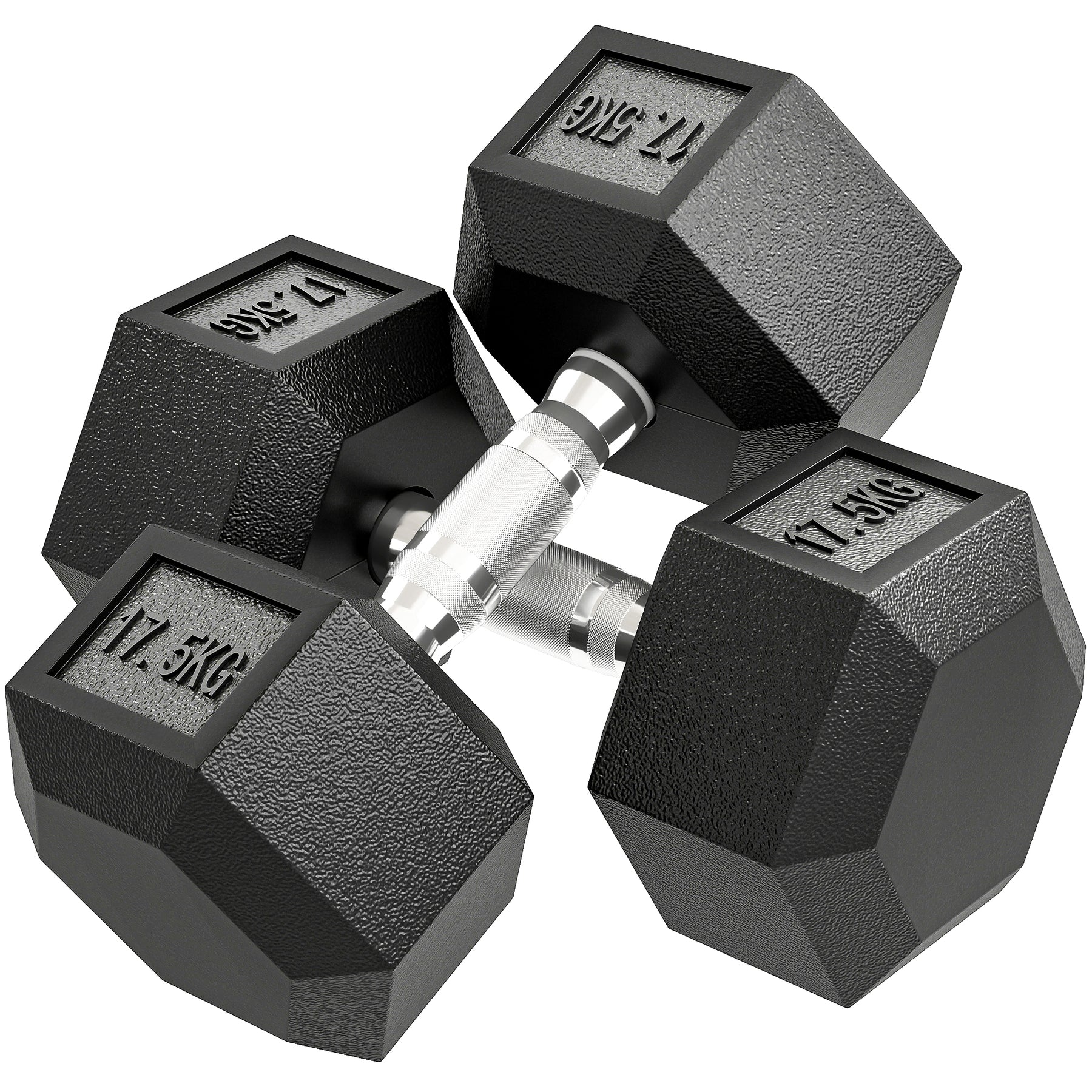 HOMCOM 2x17.5KG Rubber Hex Dumbbell Portable Hand Weights Dumbbell Home Gym