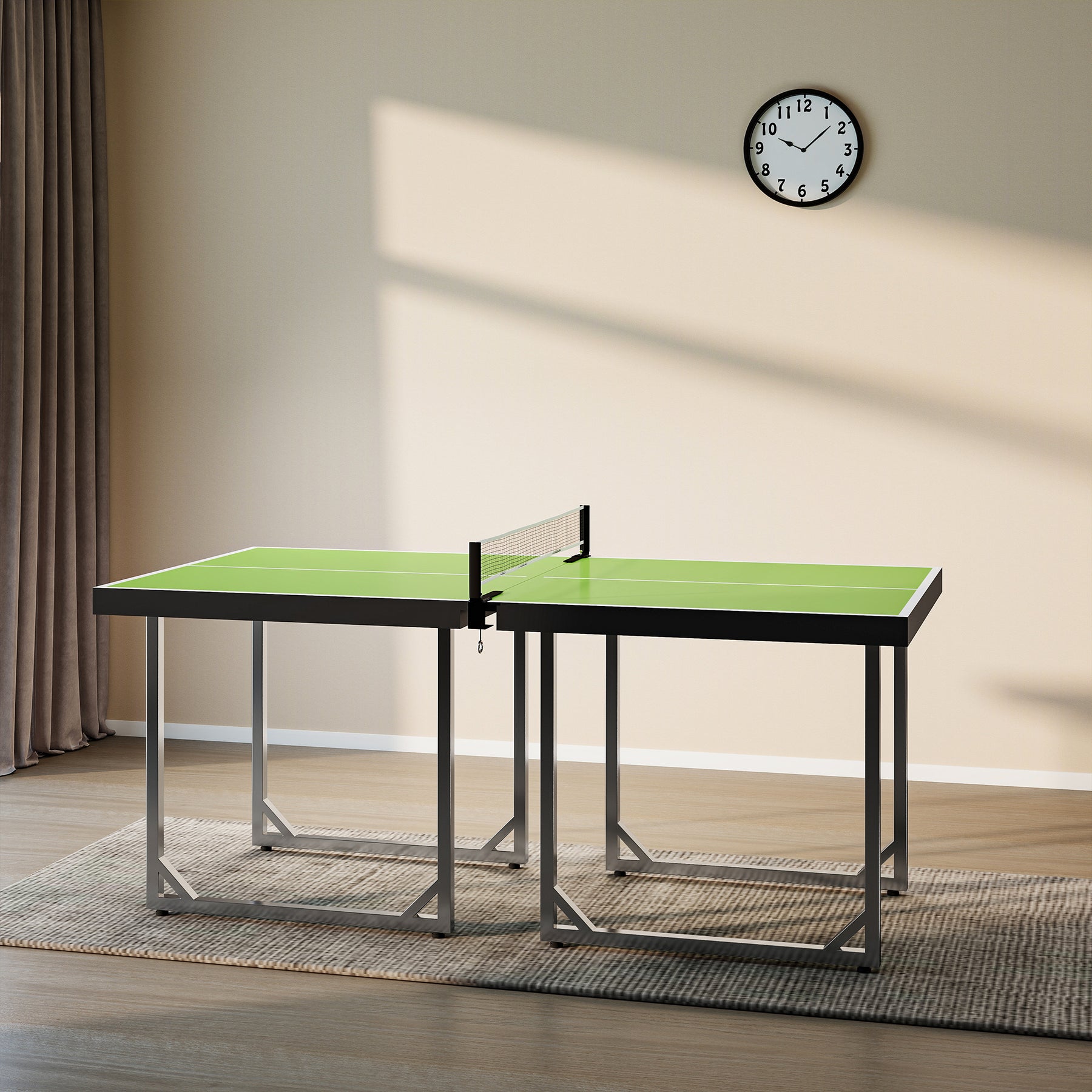 The HOMCOM Ping Pong Table is a great solution for ping pong enthusiasts with limited space. Featuring a regulation-height design (76 cm) and a generous 182 x 91 cm playing surface, it offers an authentic experience in a compact format. Each half folds down into a square shape that can be used separately as a game table or for general use, such as board games, cards or crafts. Whether you're taking a quick break at the office or entertaining guests, this table brings versatile fun for all ages.