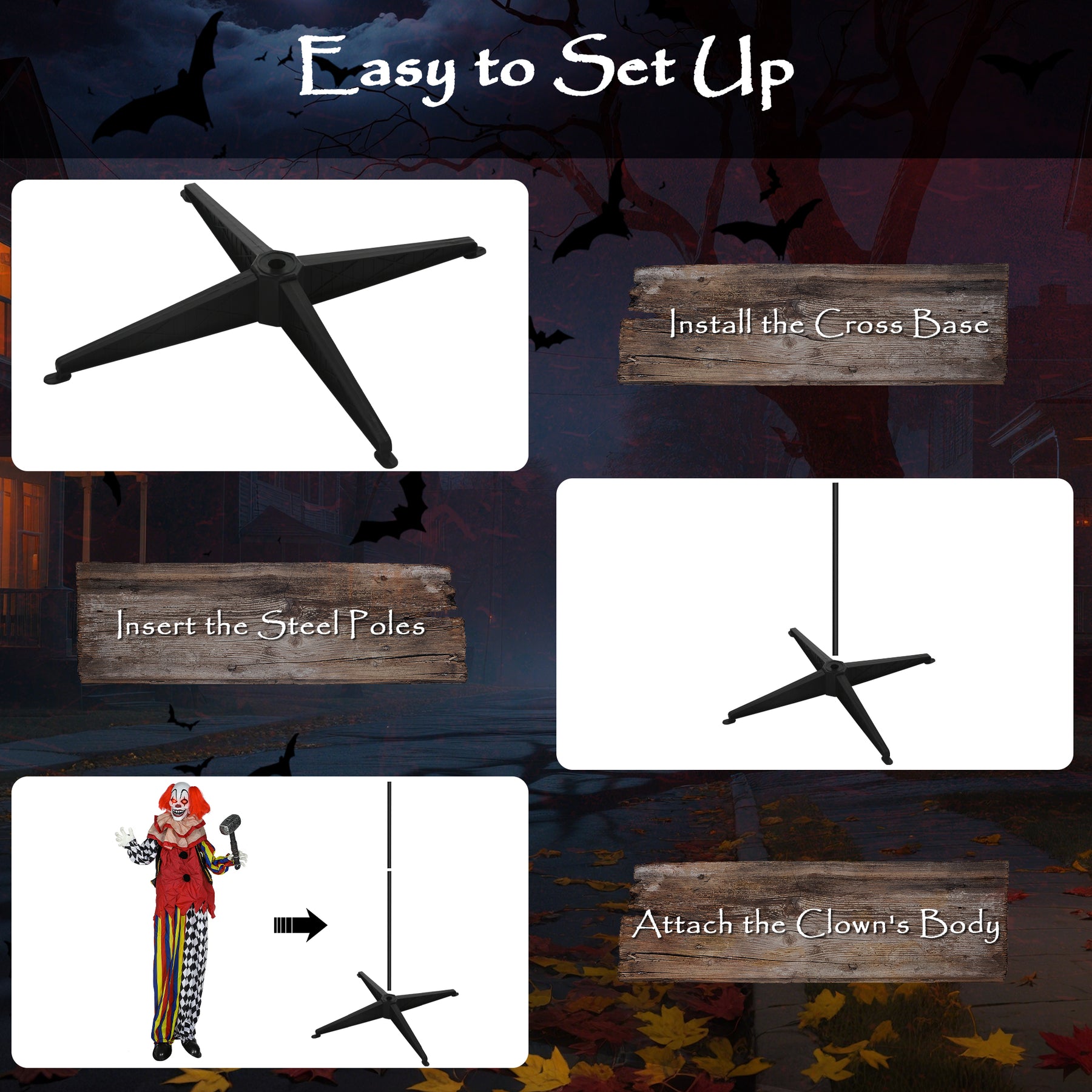 Tired of static Halloween displays that lack interactive fright? Generic decor often fails to deliver that spine-chilling excitement. Elevate your Halloween decorations with the Outsunny scary Halloween decoration. This 173 cm scary clown responds to sound, with its head and arms swaying to eerie, mischievous music. It creates a chilling atmosphere that draws attention and adds life to your Halloween scene.