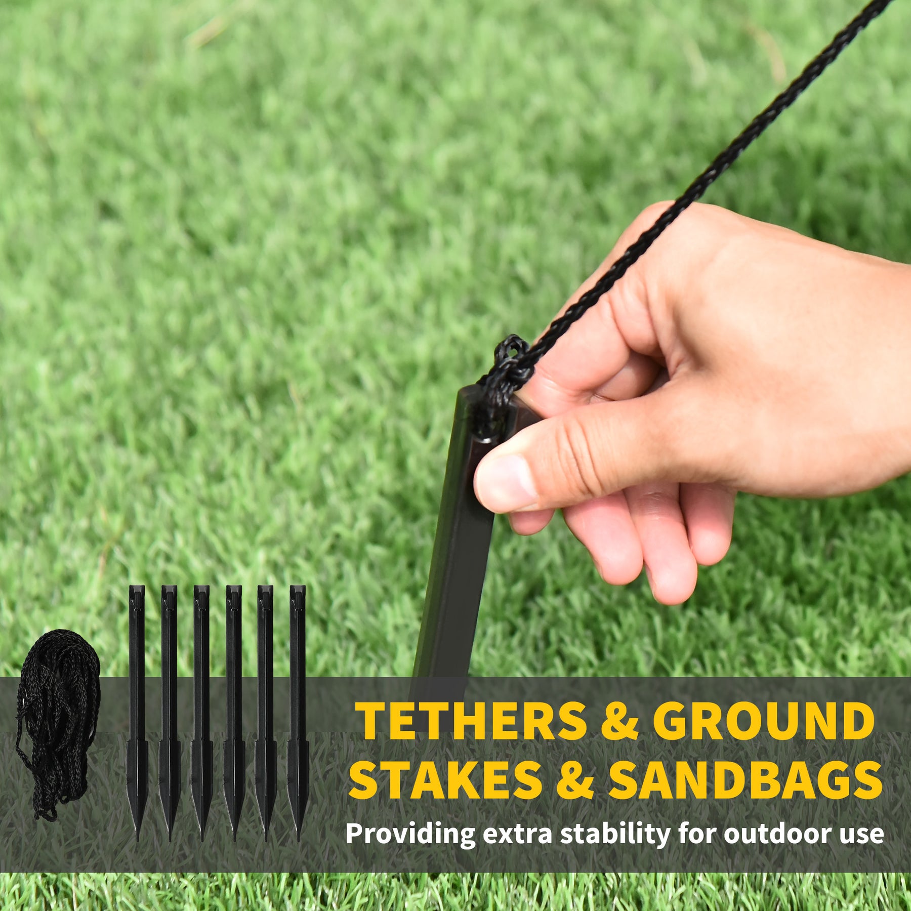 - Includes stakes, ropes and a sandbag, ensuring stability in windy weather