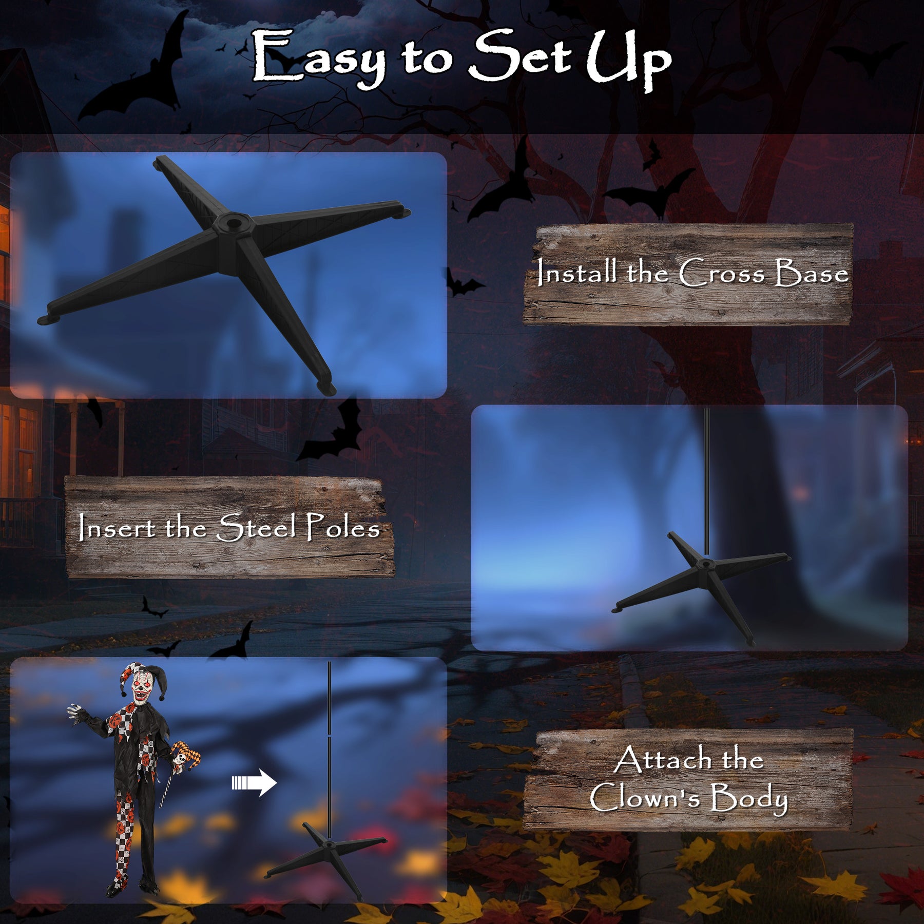 Tired of static Halloween displays that lack interactive fright? Generic decor often fails to deliver that spine-chilling excitement. Elevate your Halloween decorations with the Outsunny scary Halloween decoration. This 183 cm scary clown responds to sound, with its head and arms swaying to eerie, mischievous music. It creates a chilling atmosphere that draws attention and adds life to your Halloween scene.