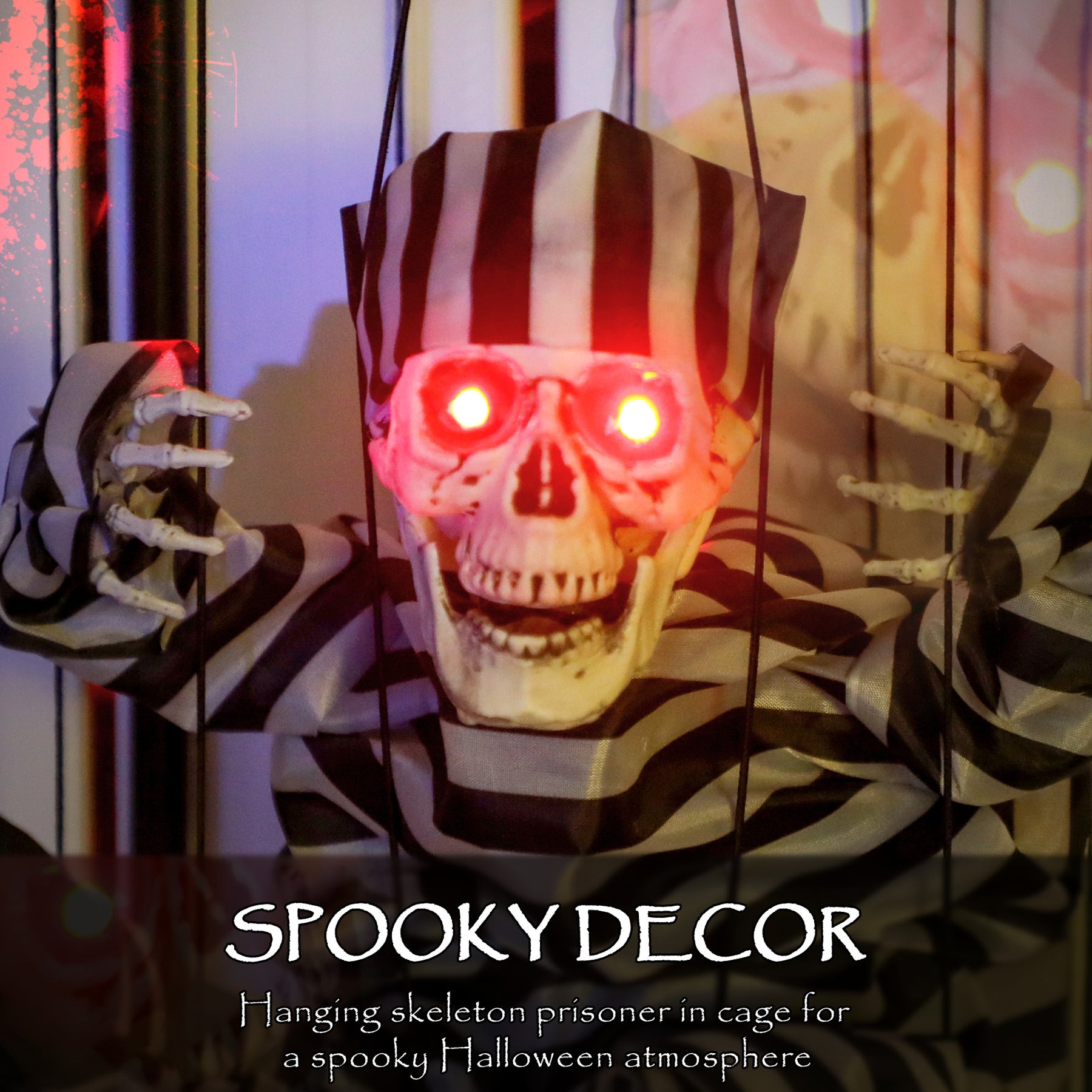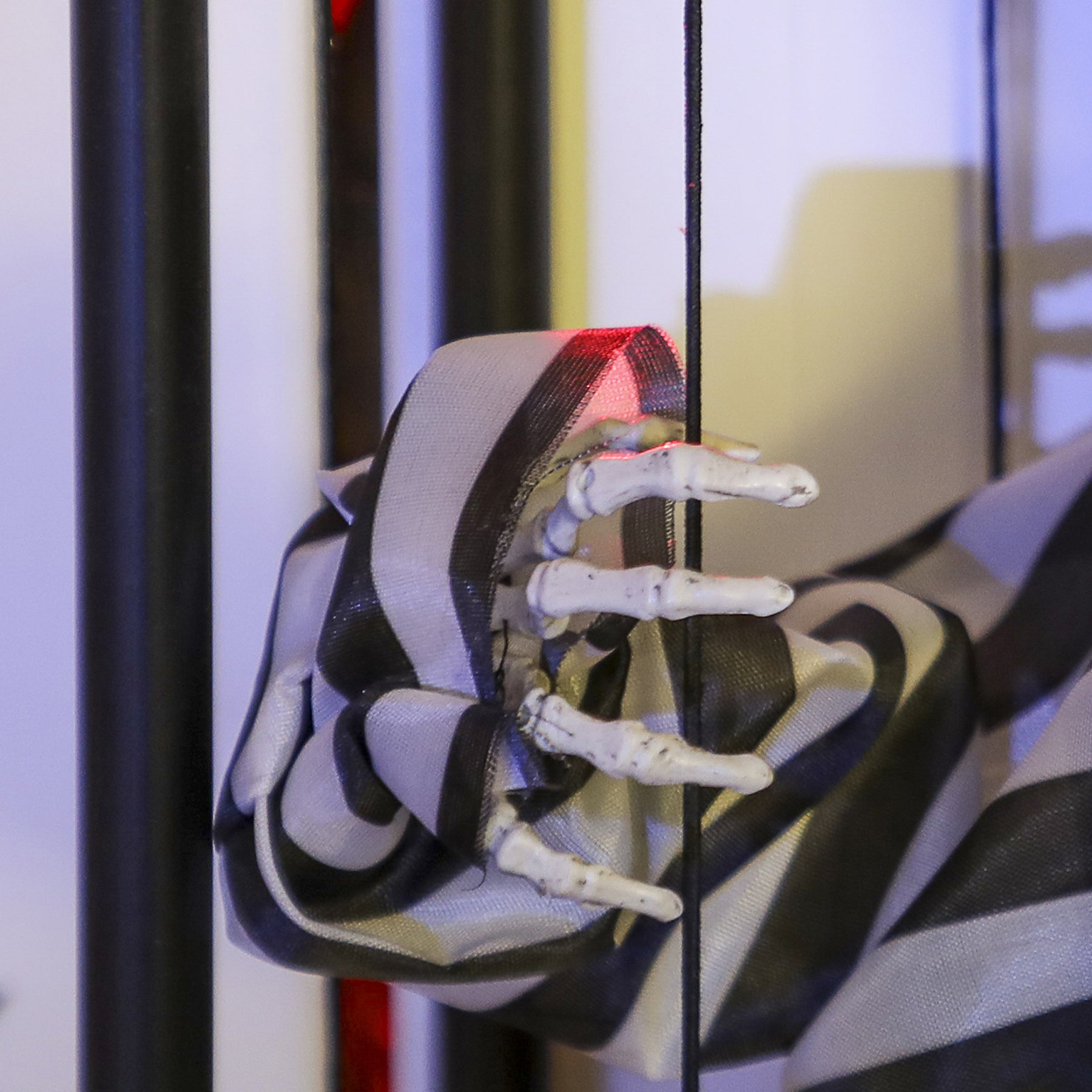 Outsunny Halloween Animated Hinging Skeleton Prisoner in Cage with Glowing LED Eyes, Spooky Skeleton Scary Halloween Decorations, Battery Operated, Indoor Party Props