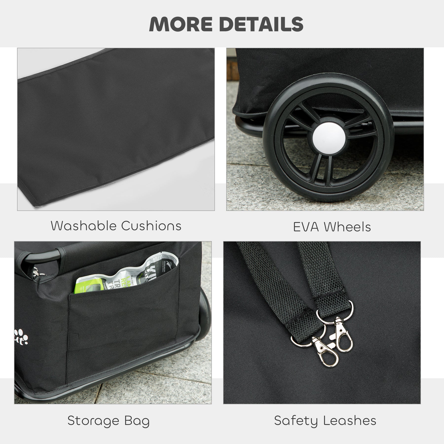 Explore new adventures with your pet using this PawHut dog stroller. Tailor the push bar for optimal comfort and benefit from its compact, lightweight structure, suitable for travel and simple storage. The 45° entry of the pet wagon allows your furry companion easy access, ensuring they can relax and take in the views securely with an integrated belt. Each journey promises to be an unforgettable experience for you both!