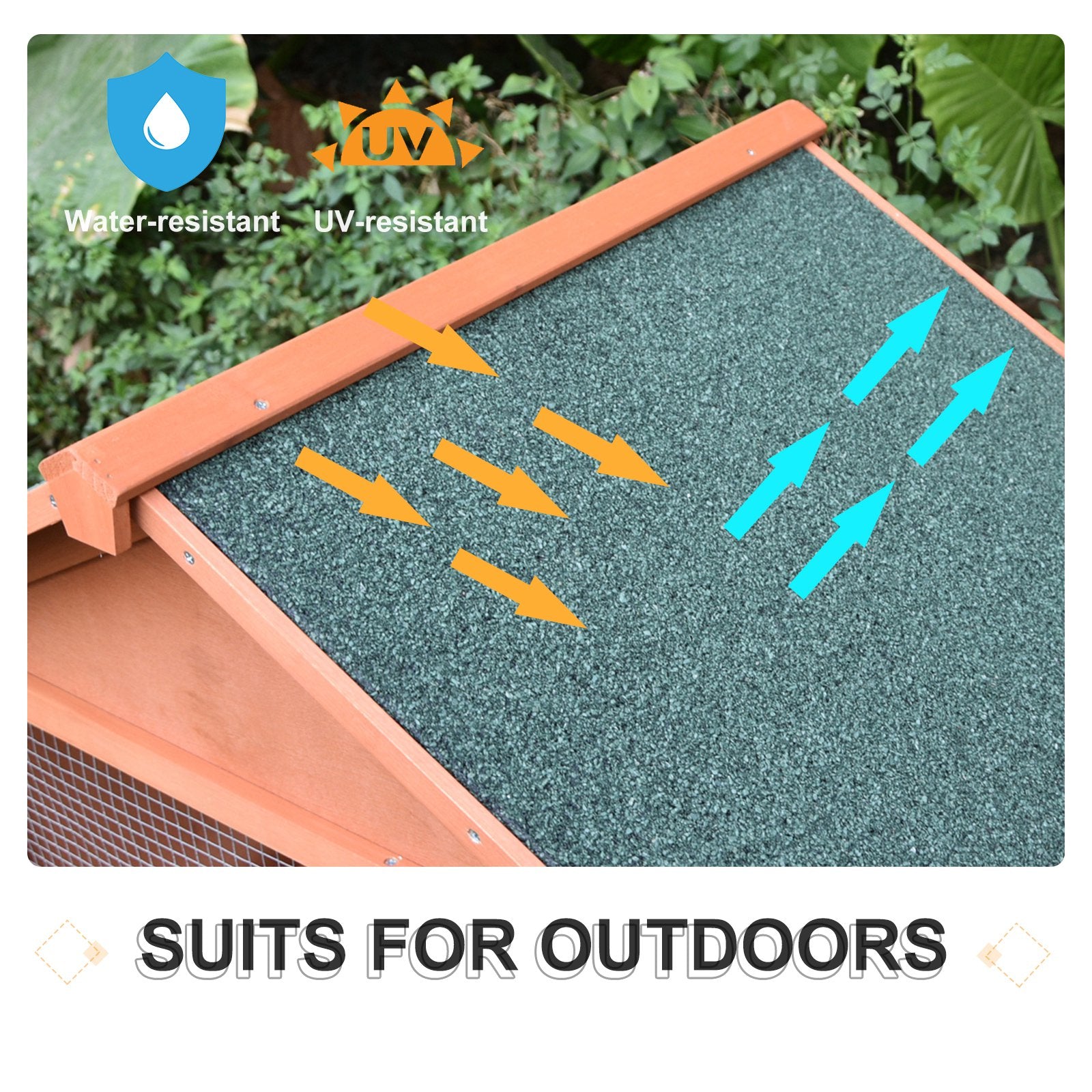 Give your rabbit a place they’ll truly love with this large house hutch from , consisting of a two-level house and a large outdoor run. Made from solid fir wood in a natural finish for continual support all-year round, the spacious house features a spacious house, a side room and a tilted roof with asphalt covering, preventing water from building up and protecting your pet from water and UV rays from entering inside, with it covered in water-resistant paint to make it suitable for outdoor use all-year round. Easy to get inside thanks to the opening roof, doors with secure latches and a pull-out tray for cleaning, it is finished with a high metal mesh fence to keep them secure whilst getting plenty of fresh air.