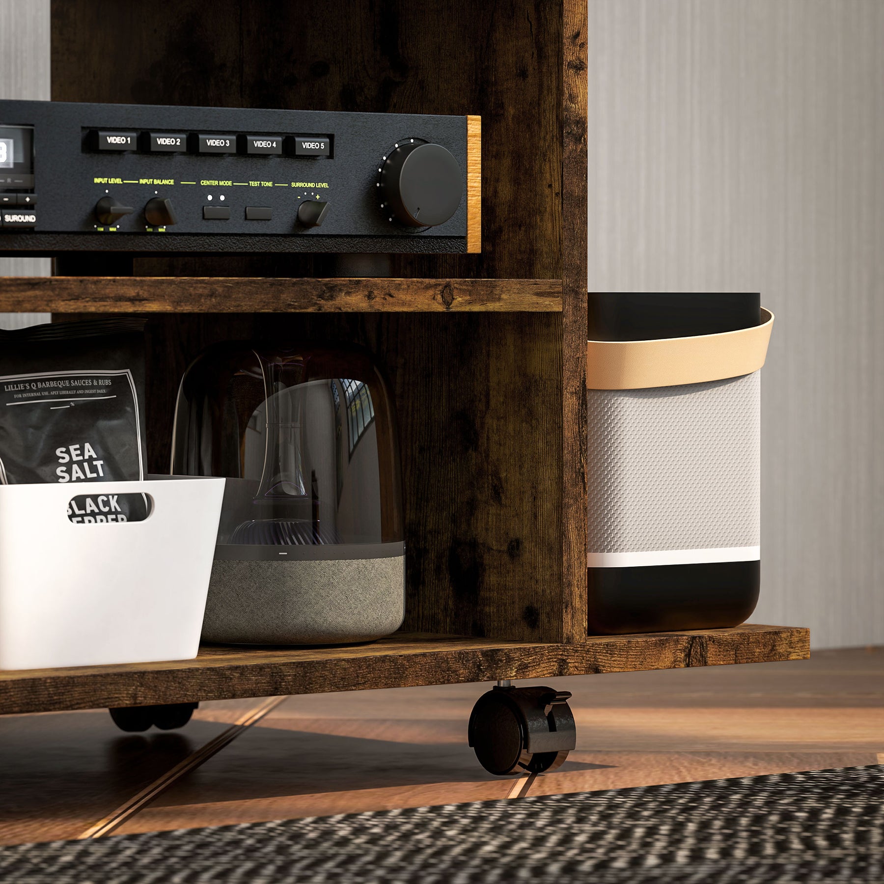 This stylish TV unit is a suitable option for living room furniture. Featuring a stand top and a two-layer open shelf, it provides more space for your other stuff. Four 360° castor wheels under the entertainment unit enable you to move it with ease to wherever you'd like. They also complete with brakes, so the table can be kept static in a certain place.