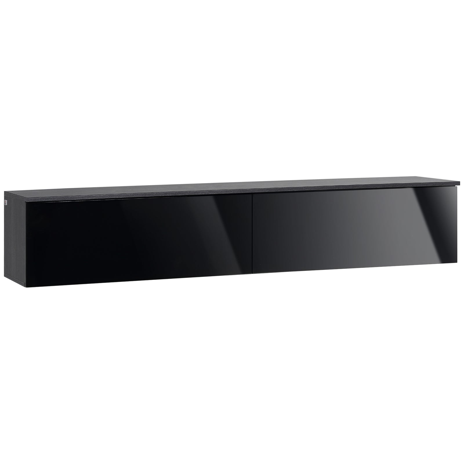 160cm High Gloss Floating TV Unit Stand for TVs up to 70", Wall Mounted TV Cabinet with Storage Cupboards, Grey and Black