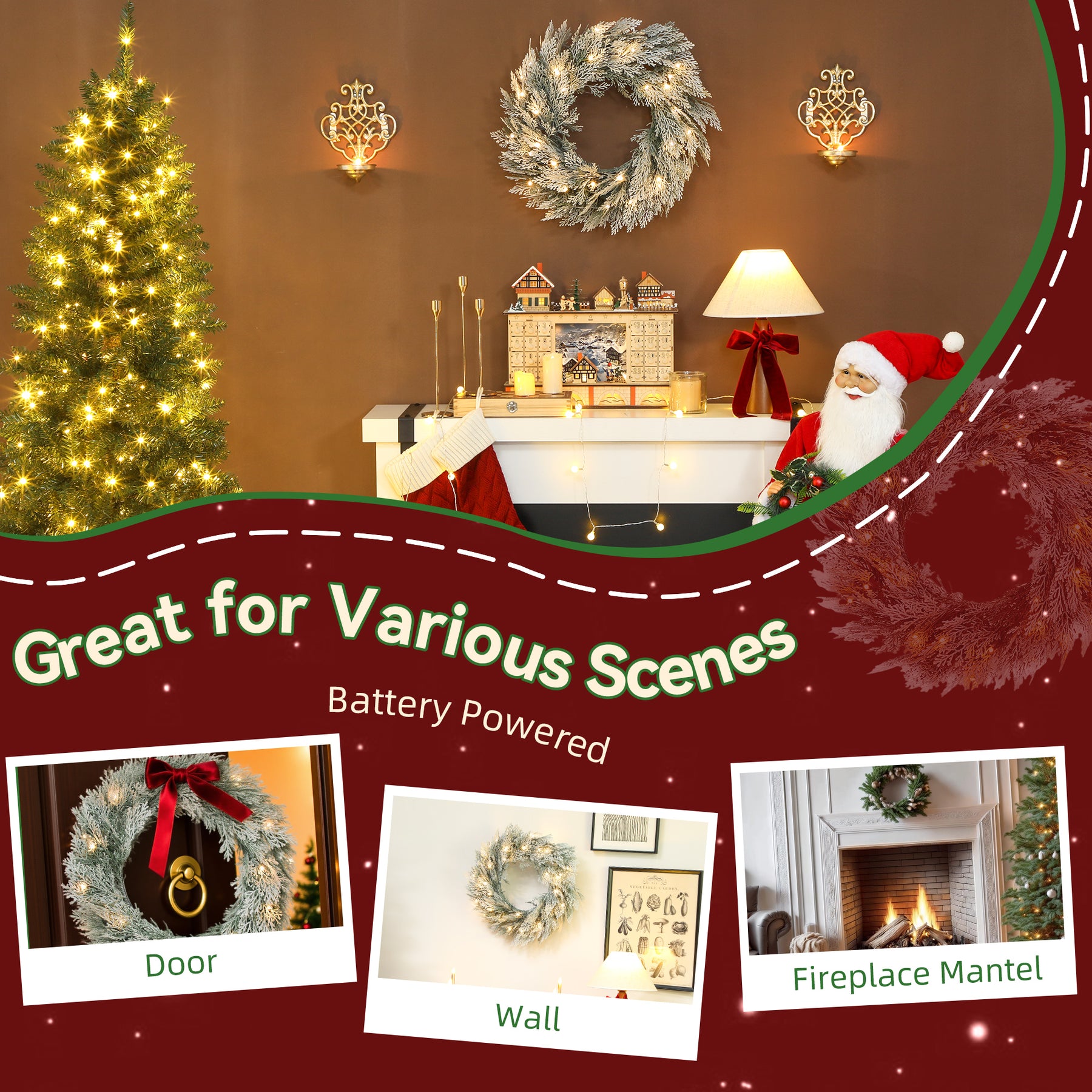 Tired of festival decor that lacks that special spark? Your entryway feels ordinary, failing to create a warm, festive welcome for guests. This HOMCOM Christmas door wreath transforms any space with its "snow-kissed" silver tone glitter and warm white LEDs. Effortlessly create an inviting, celebratory glow on your door or window, making every arrival feel like a cherished moment.