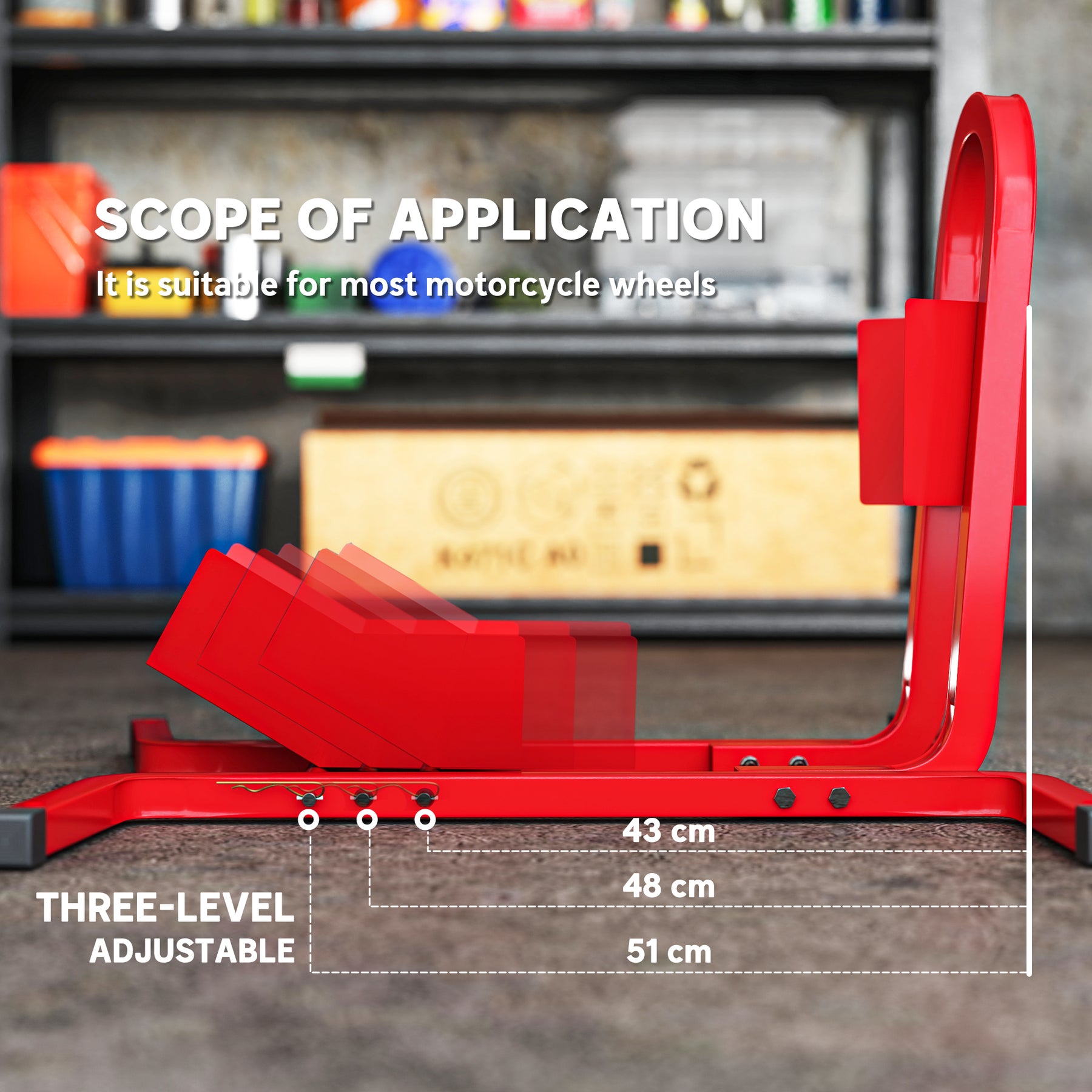 HOMCOM Metal Motorcycle Motorbike Wheel Chock Locking Stand System 17", 19", 21"/43, 48, 51 cm Front Wheels Steel Adjustable Fixing Tyre Holder Support