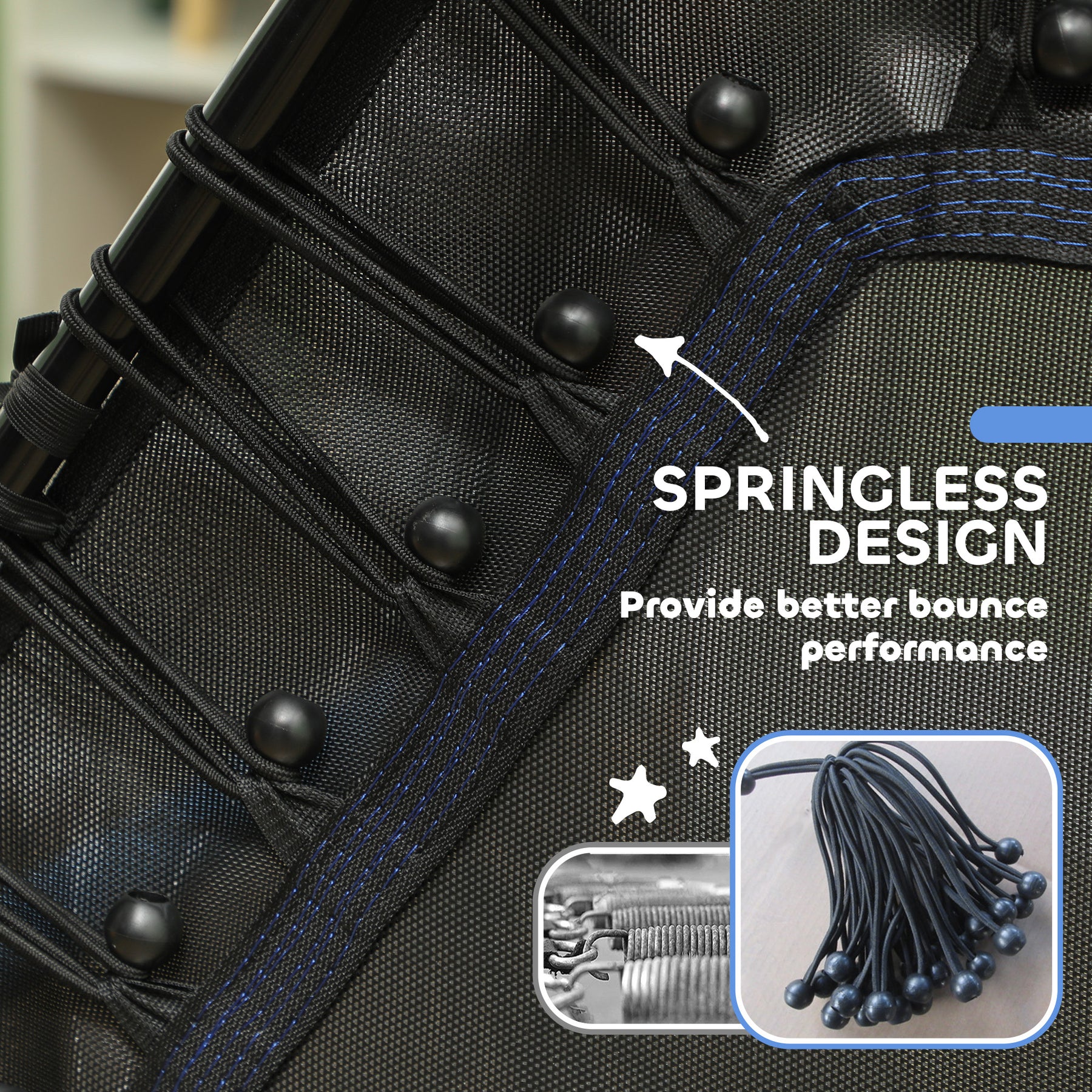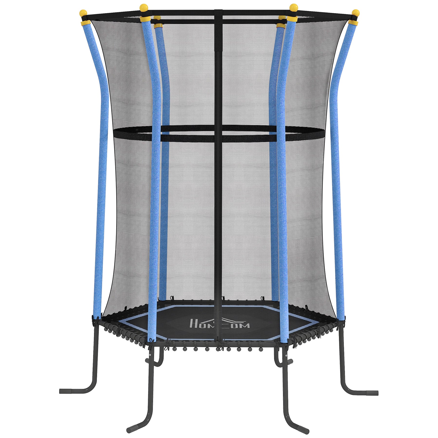Enjoy hours of jumping joy with the kids trampoline – suitable for ages 3–10 years. It's a fun and active way to keep little ones entertained. Built with a strong, powder-coated steel frame, this trampoline is stable and secure. Safety comes first with the enclosed mesh net and padded poles to help prevent falls, while the bungee cord design replaces metal springs, so there are no sharp parts sticking out. Lightweight and easy to move, it's great for both indoor and outdoor play.