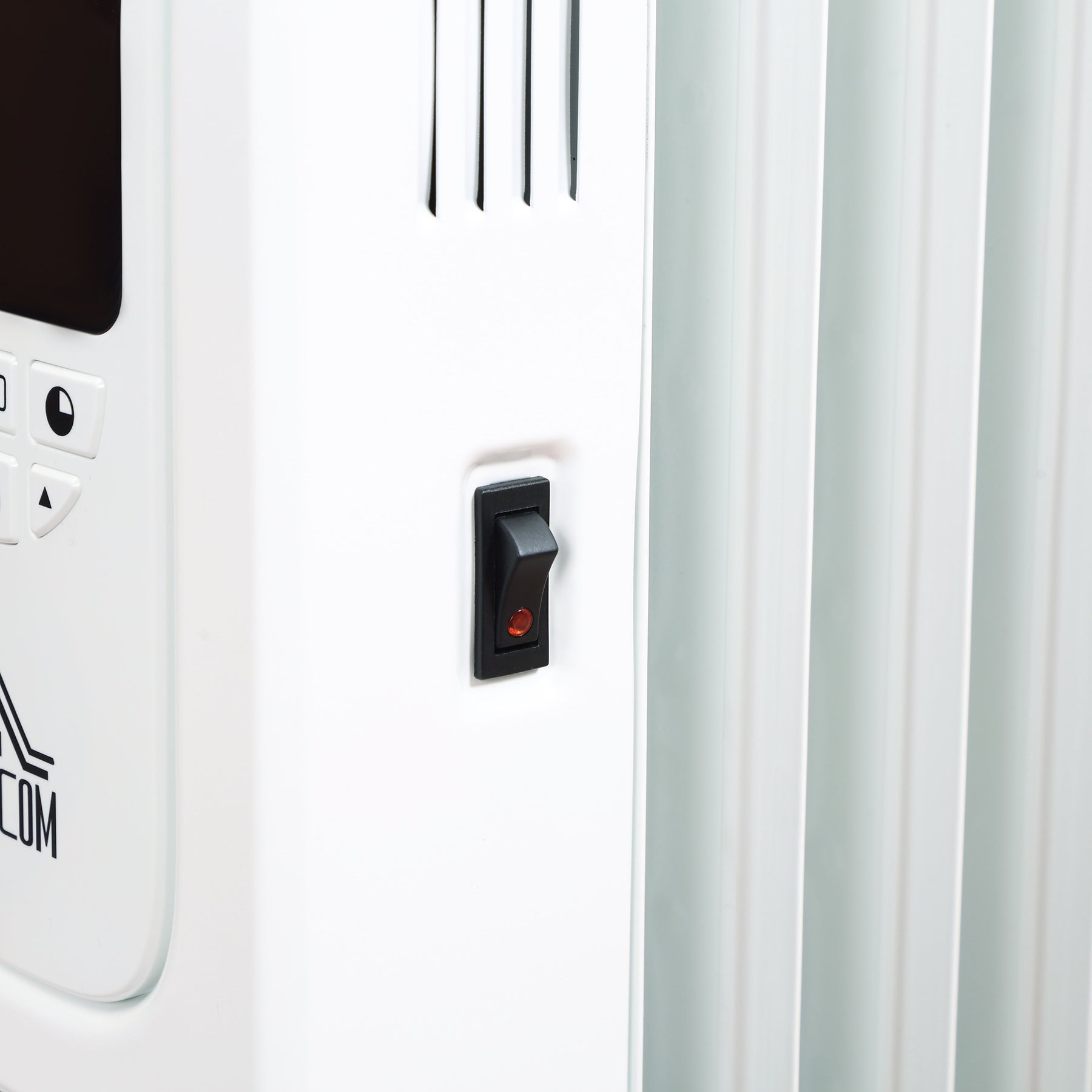 MCL 1500W Digital Oil Filled Radiator, 7 Fin, Portable Electric Heater with LED Display, Built-in Timer, 3 Heat Settings, Safety Cut-Off and Remote Control, White