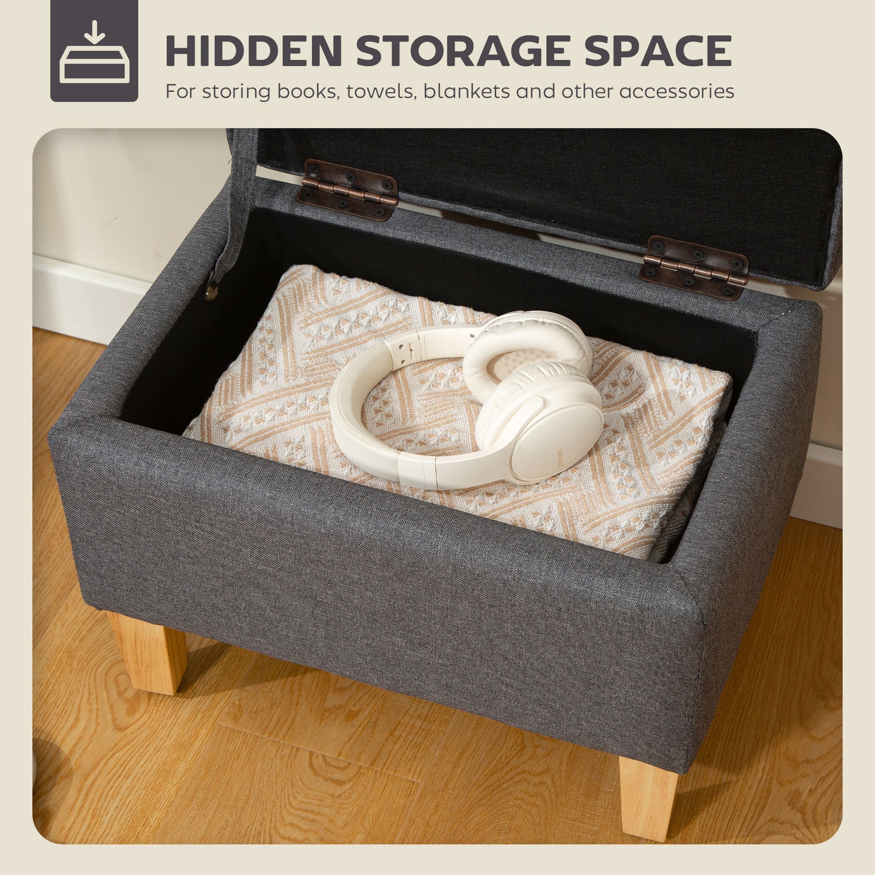 MCL 16L Linen Storage Ottoman Padded Footstool with Rubberwood Legs for Storage Box, Bed End, Shoe Bench, Seating, Charcoal Grey