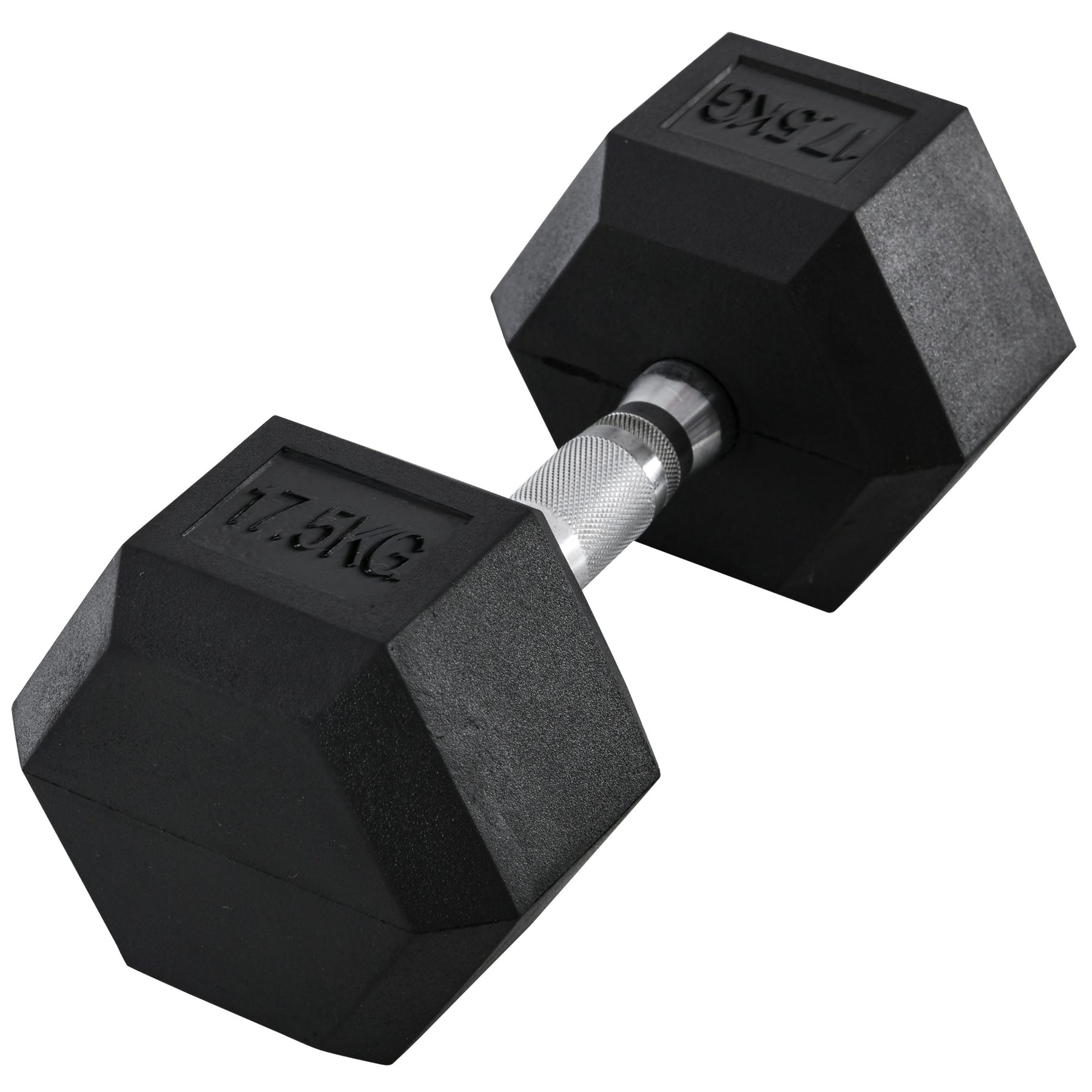 Strengthen your muscles in the most effective and easiest ways - go for this single dumbbell from MCL. The 17.5kg weight is suitable for those accustomed to the heaviness only and can be used almost anywhere in the home and outdoors thanks to the small size. The frame is steel for a strong core and features knurl indents for grip. Both ends come in a weighted, hexagonal shape, so it doesn't roll away. The weight number is carved into the protective rubber cap for you to know which to use.