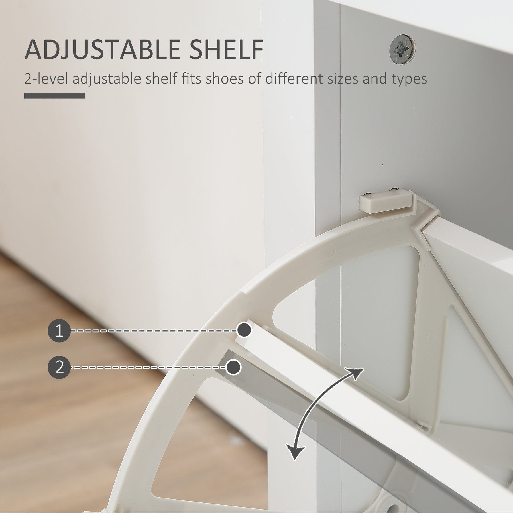 • Two tipping drawers, each with an adjustable shelf - holds six shoe pairs each (no larger than UK 10)