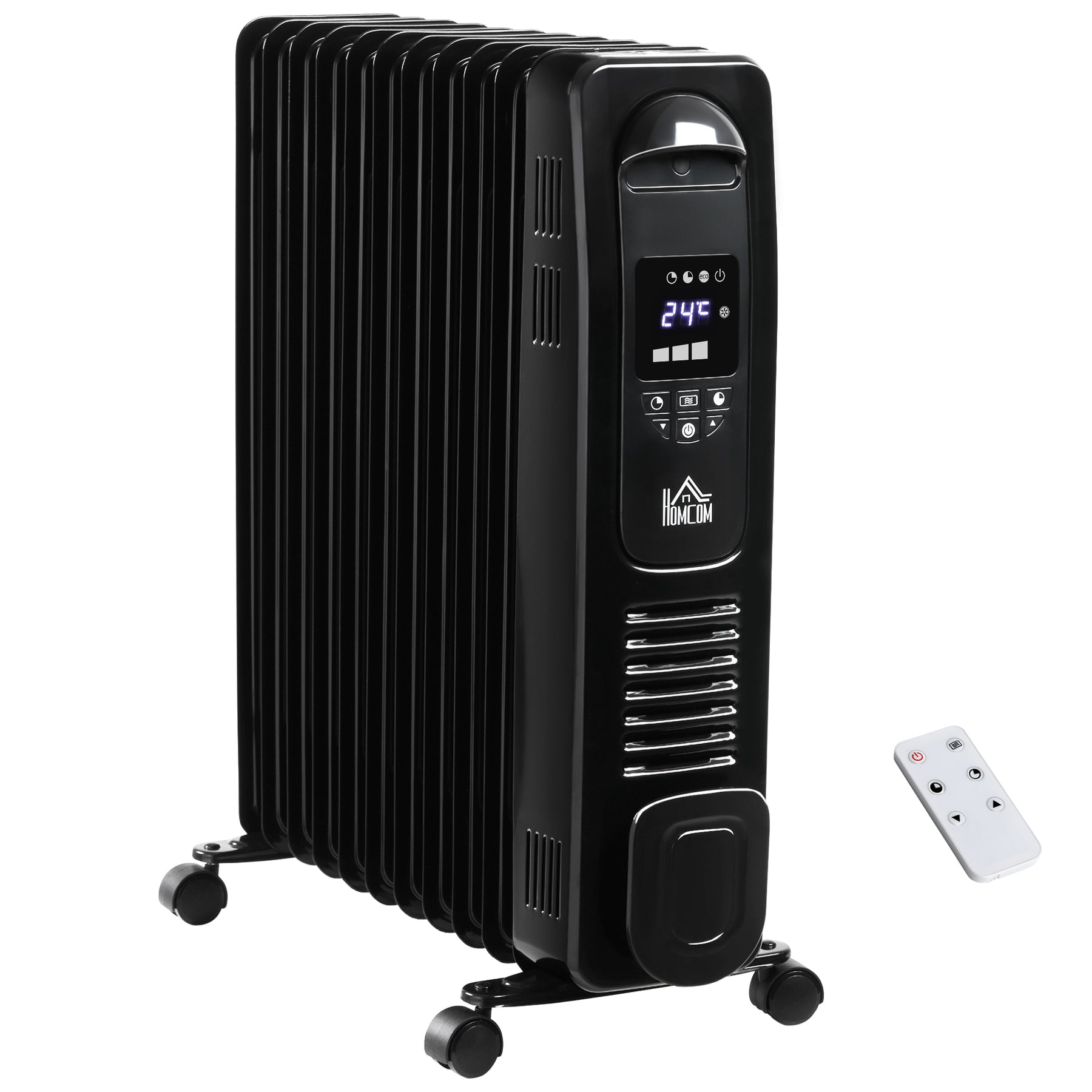 MCL 2500W Digital Display Oil Filled Radiator, 11 Fin Portable Electric Heater with Timer, Adjustable Thermostat, Three Heat settings, Safety Cut Off, Remote, Black