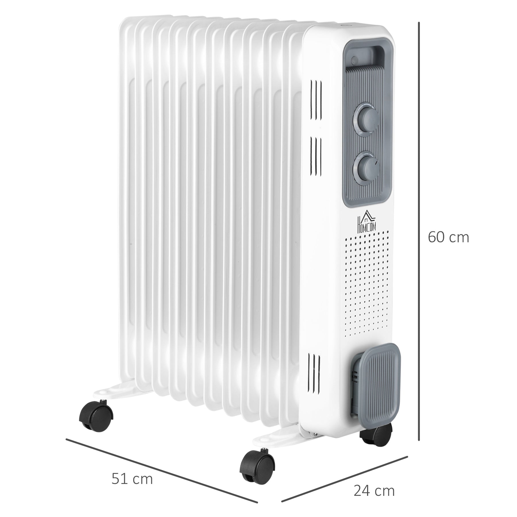 MCL 2500W Oil Filled Radiator, 11 Fin, Portable Electric Heater with 3 Heat Settings, Safety Cut-Off and Wheels, White