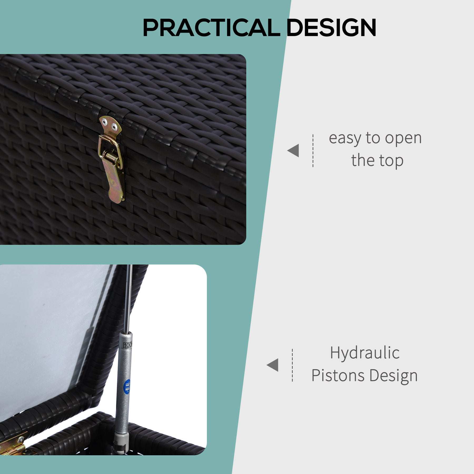 MCL 284 L Rattan Garden Storage Box, Outdoor Garden Storage Box with Gas Lift and Lockable Lid, Outdoor Wicker Rattan Chest Container for Garden Tools, 118 x 54 x 59 cm, Dark Brown
