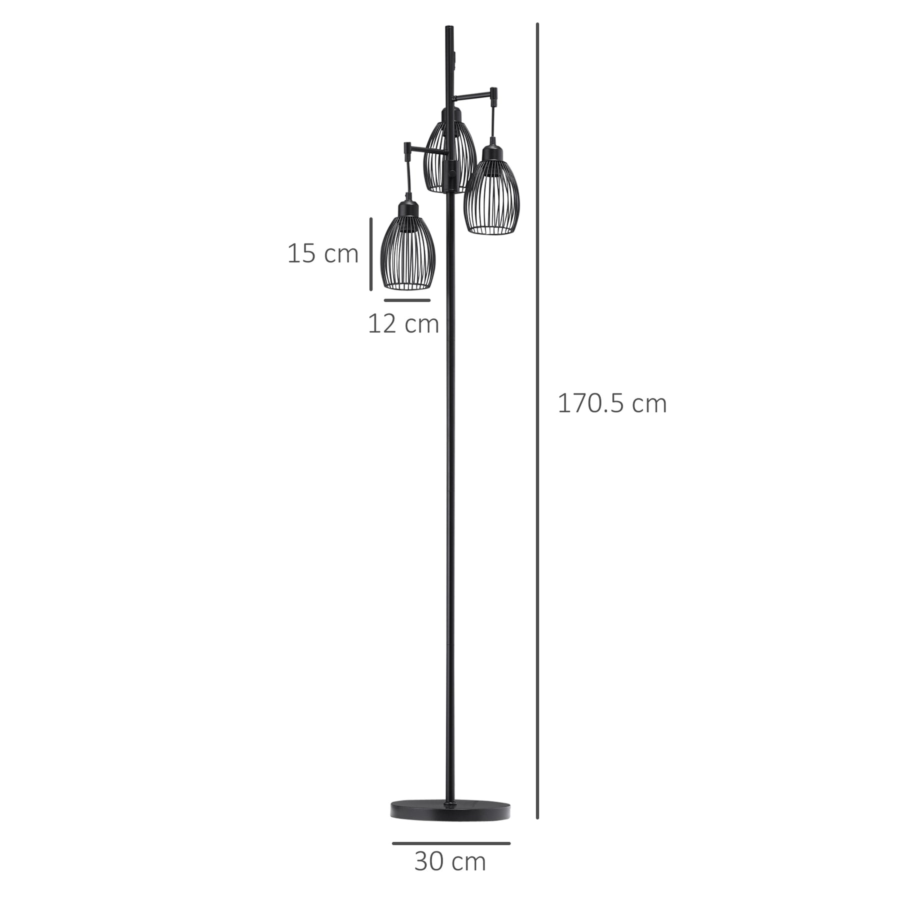 MCL 3-Light Floor Lamp, 170cm Industrial Dimmable Standing Lamp with Steel Wire Cage Lampshades for Living Room, Bedroom, Dining Room, Study, Bulb Not Included, Black