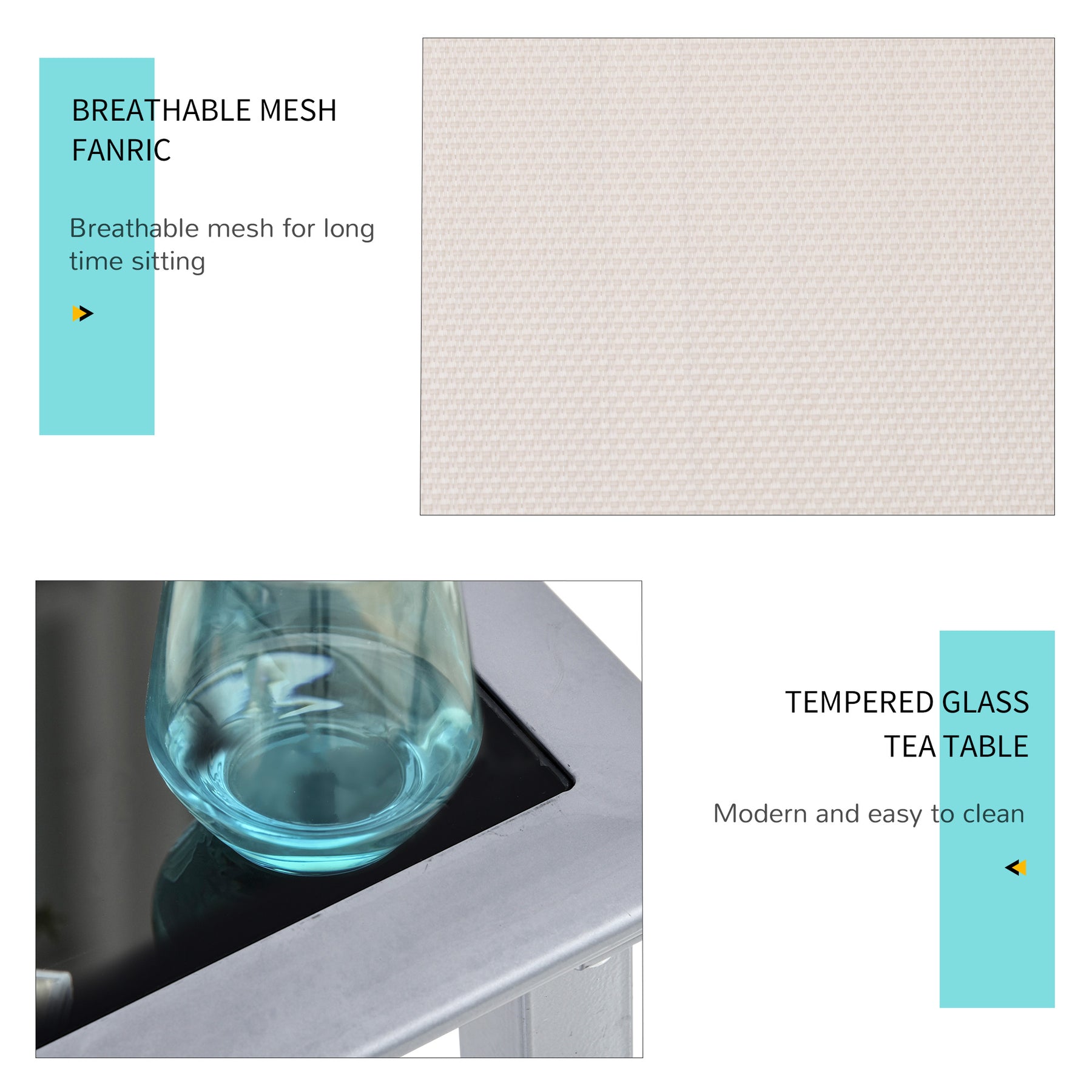 Refresh your outdoor space with the garden recliner chairs set of 3 MCL. Using metal for the frame of both chairs and a table, the structure is tough and durable, so it can be used every day. The sun loungers for garden are wrapped in breathable mesh for comfort and smoothness on the skin. The table comes with a thick glass top for a safe and secure holding place. Stylish and functional, this set is perfect for patios, gardens, balconies and any other outdoor space. Assembly is required.