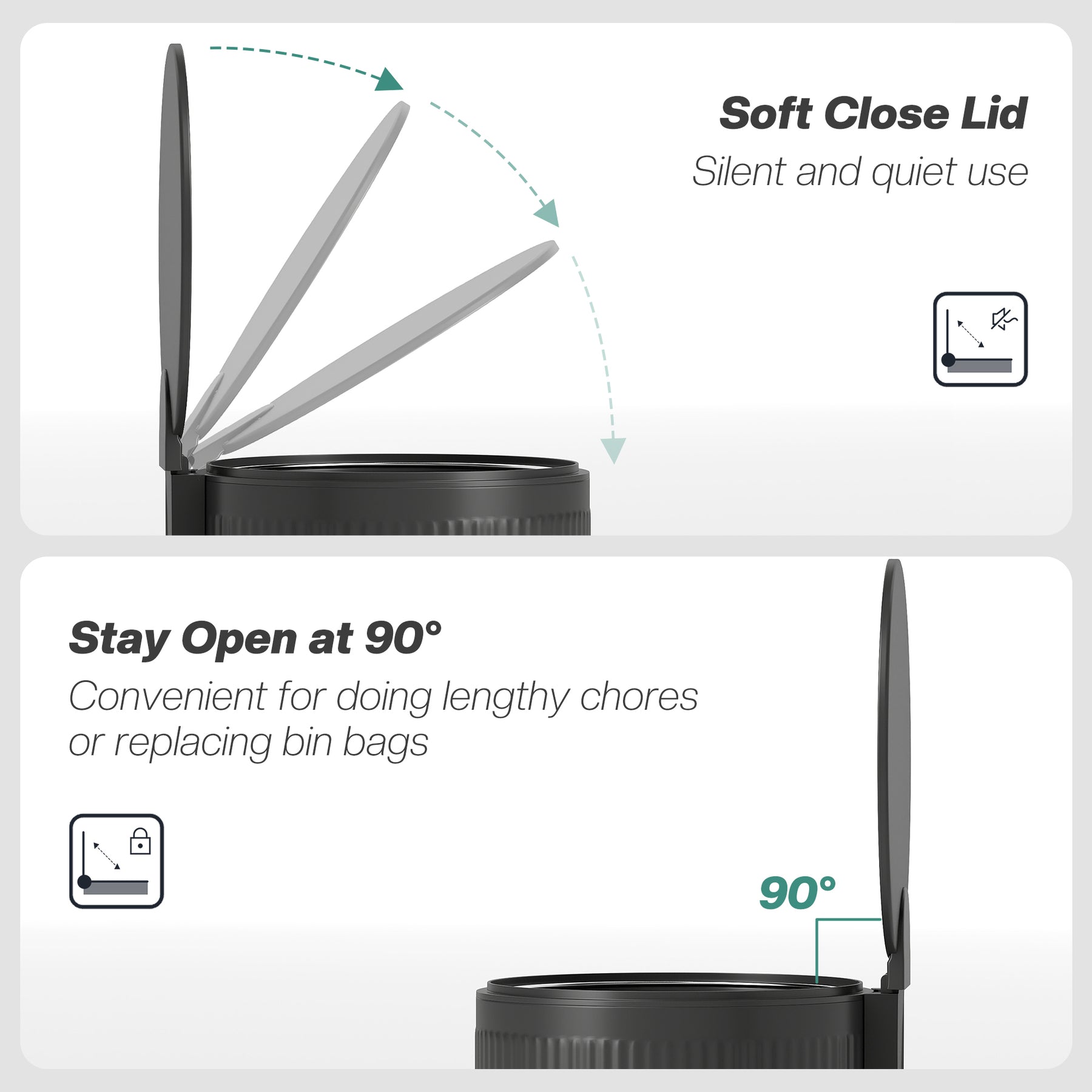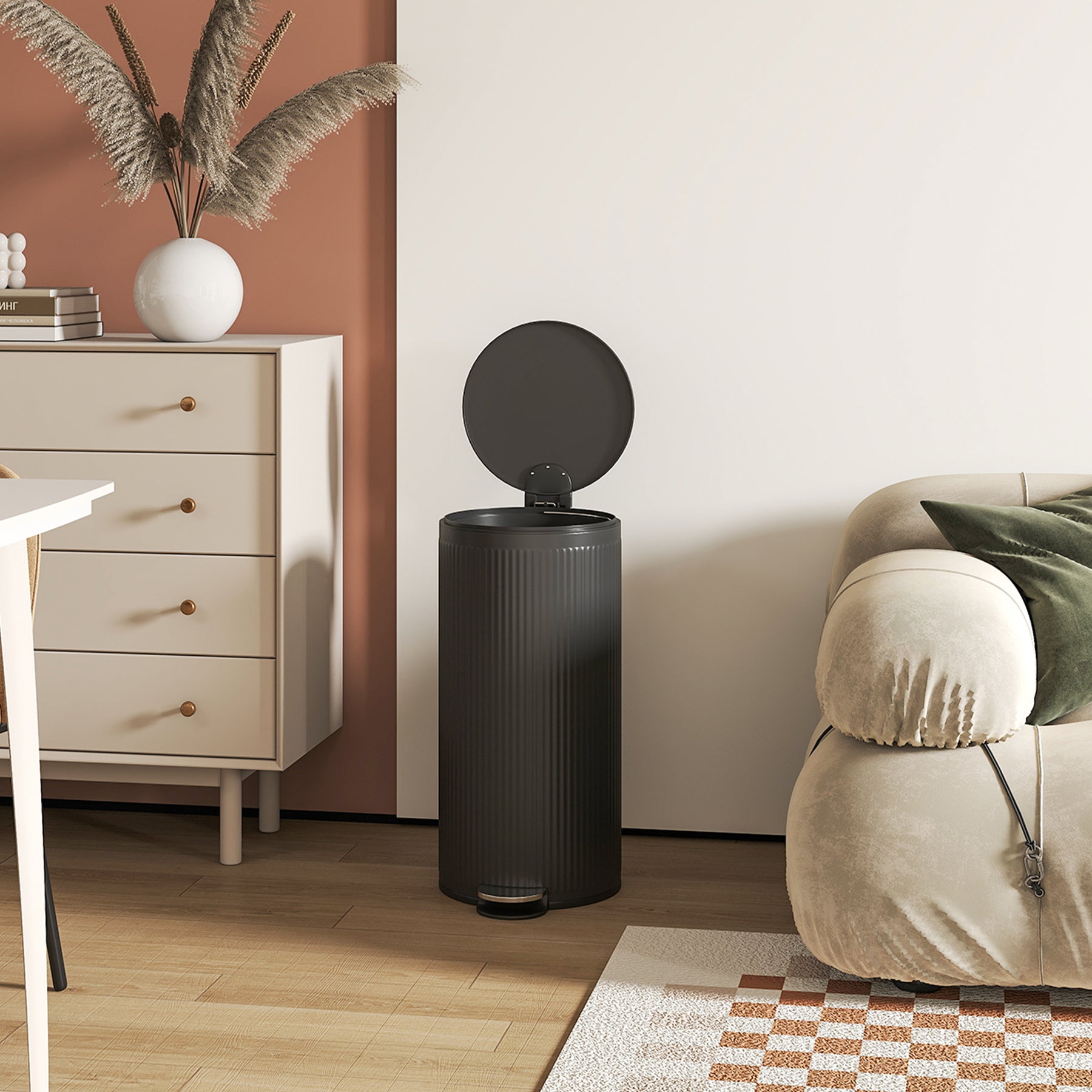 MCL 30 Litre Pedal Kitchen Bin with Soft Close and Stay Open Lid, Rubbish Bin with Removable Inner Bucket for Kitchen, Office, Home, Black