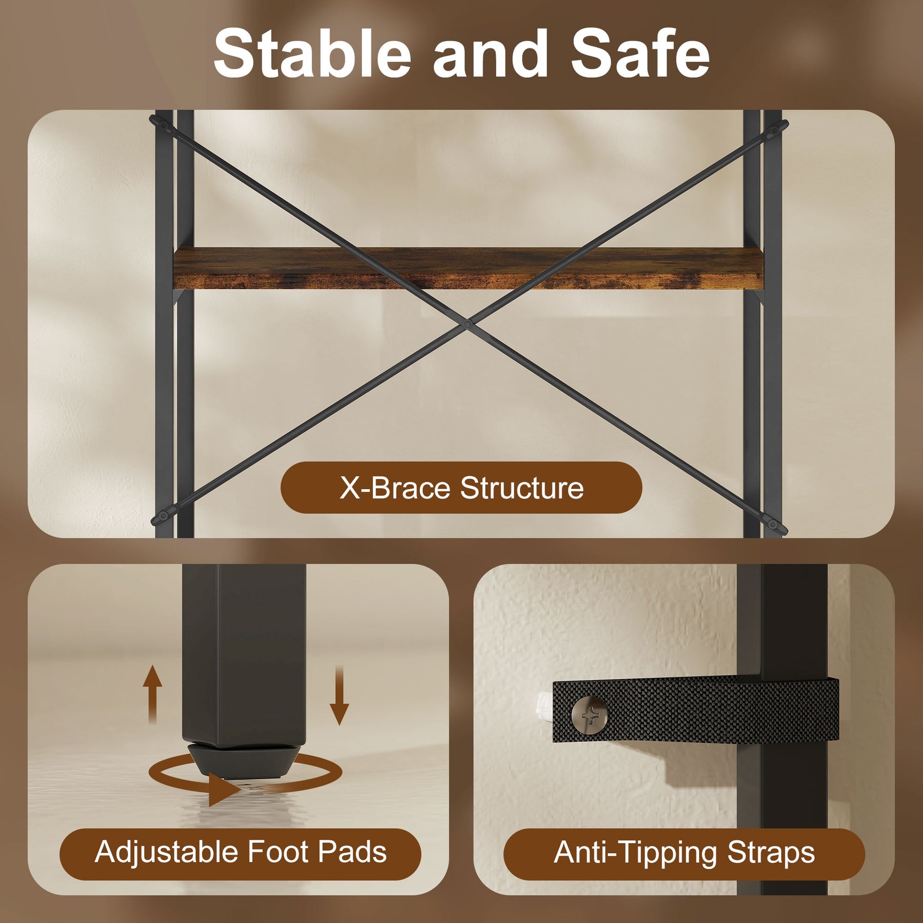 - Anti-tipping straps included to secure unit to wall