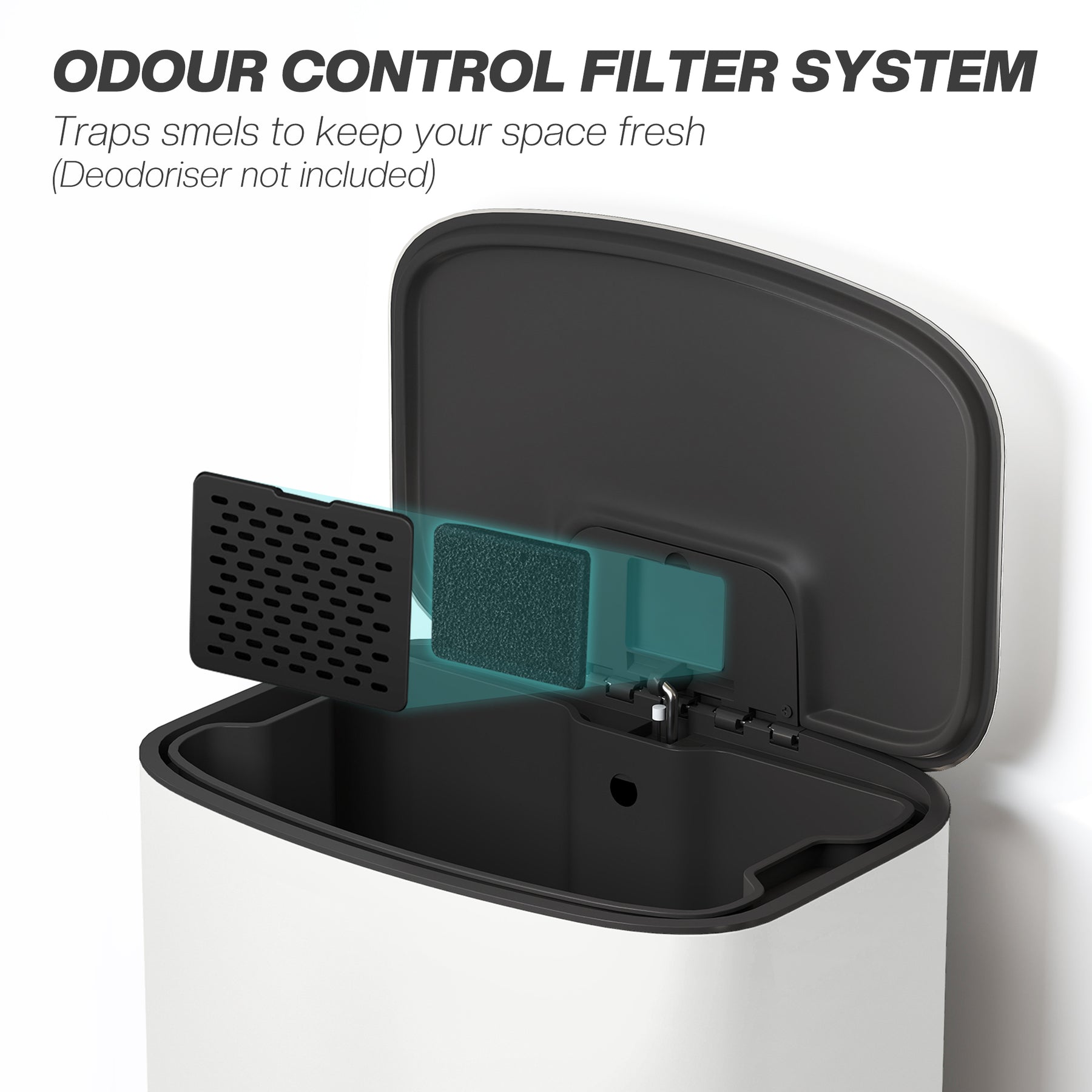 MCL 50L Kitchen Bin with Soft-Close Lid and Stay-Open Function, Stainless Steel Pedal Bin with Removable Inner Bucket, Carry Handle for Kitchen, Office, Home, Cream