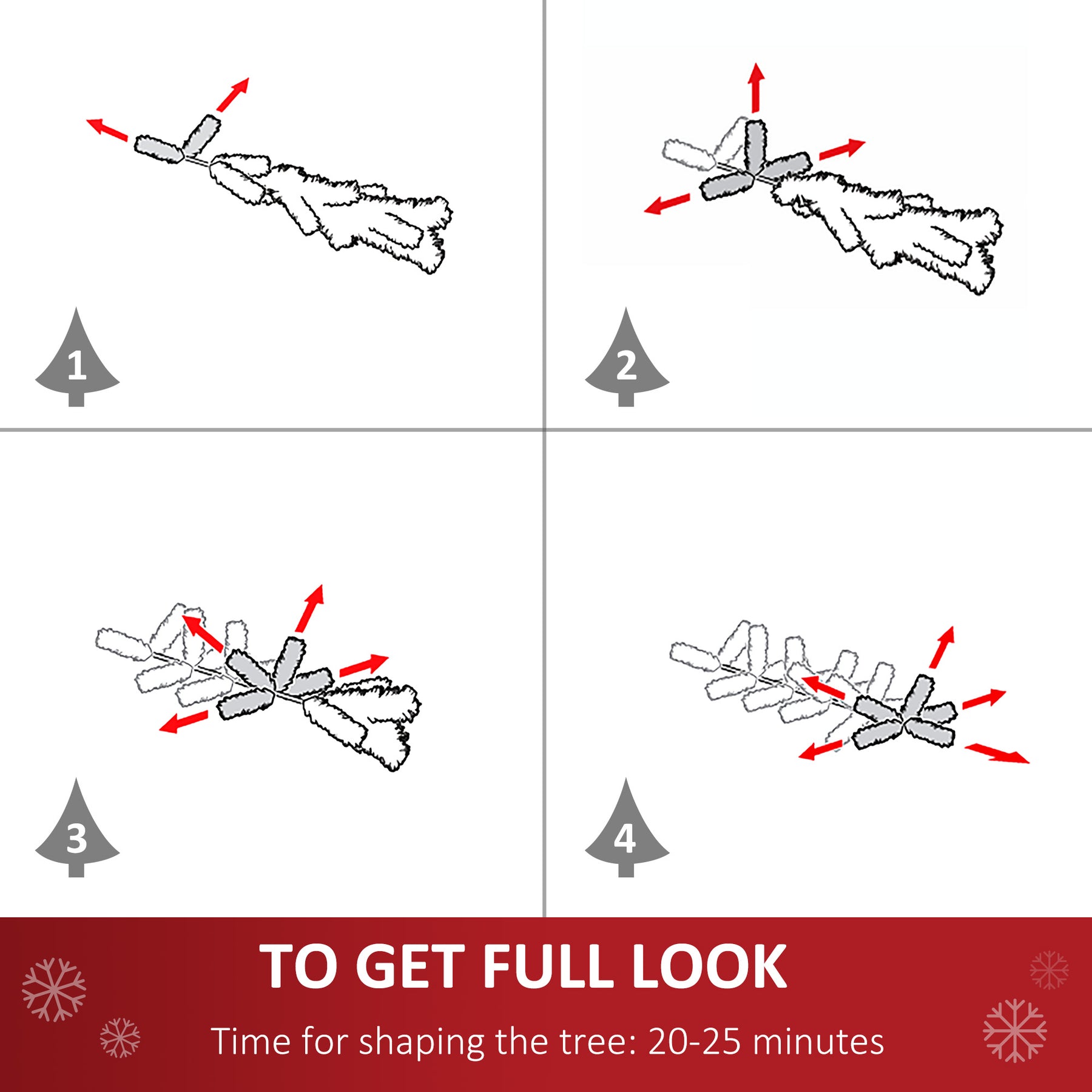 • Tall top branch to hold star/angel topper in place