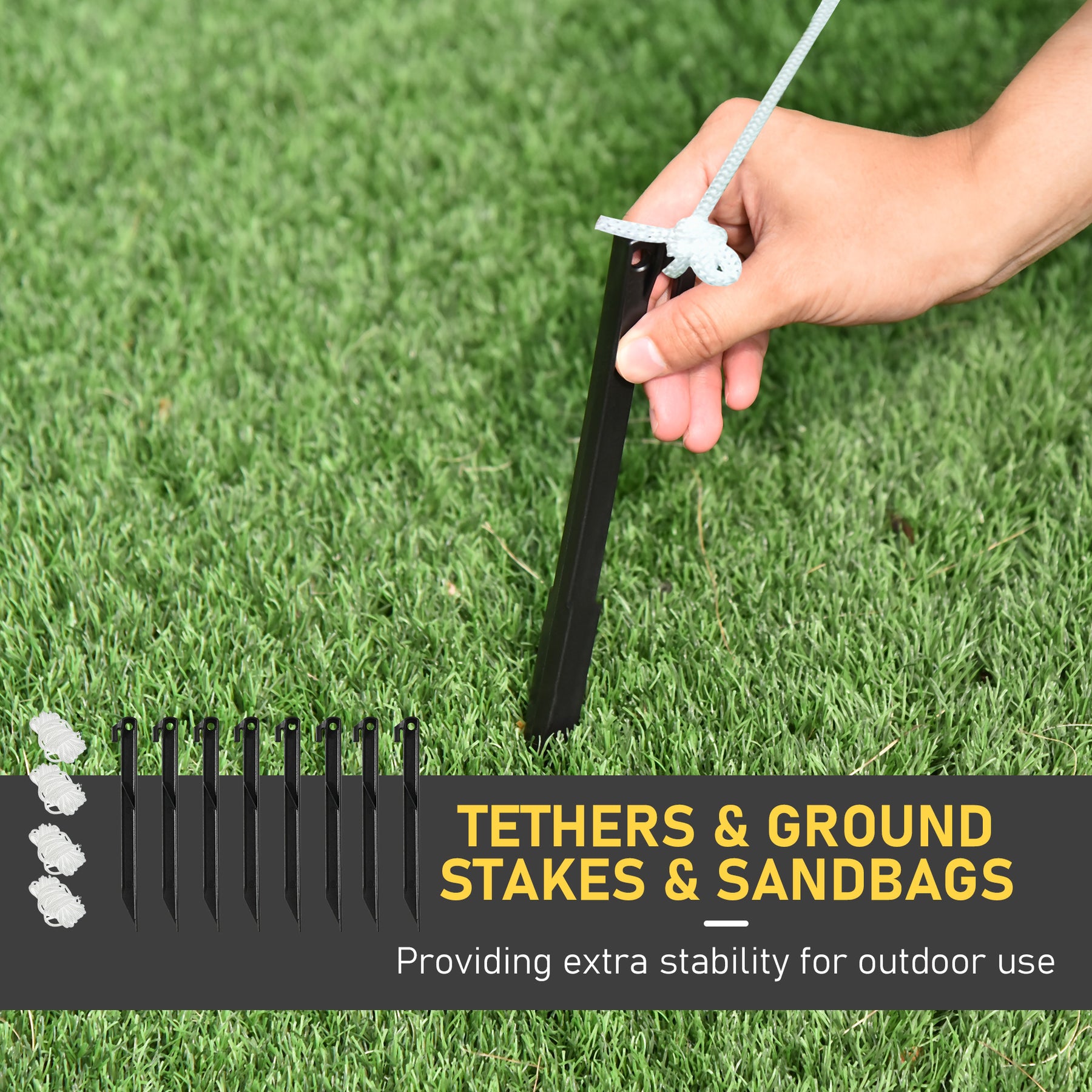 • Includes 8 x ground stakes, 4 x guy ropes and 2 x sandbags