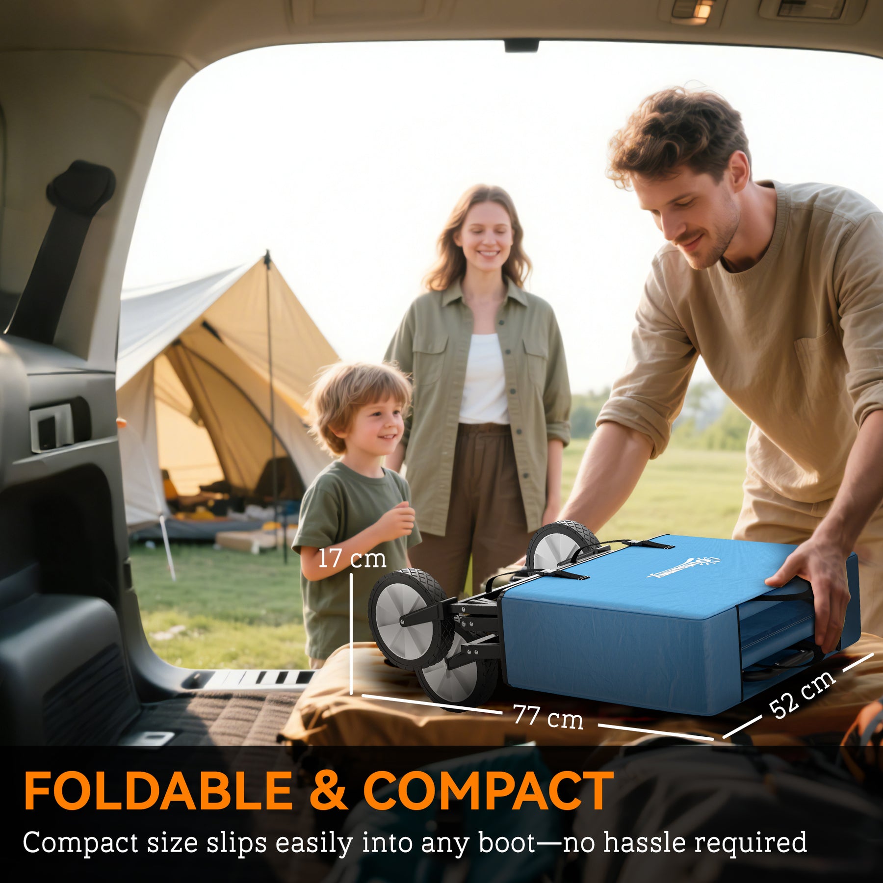 MCL 90L Festival Trolley on Wheels, Folding Camping Trolley Cart with Adjustable Handle, Portable for Outdoor, Garden, Shopping, Fishing, Blue