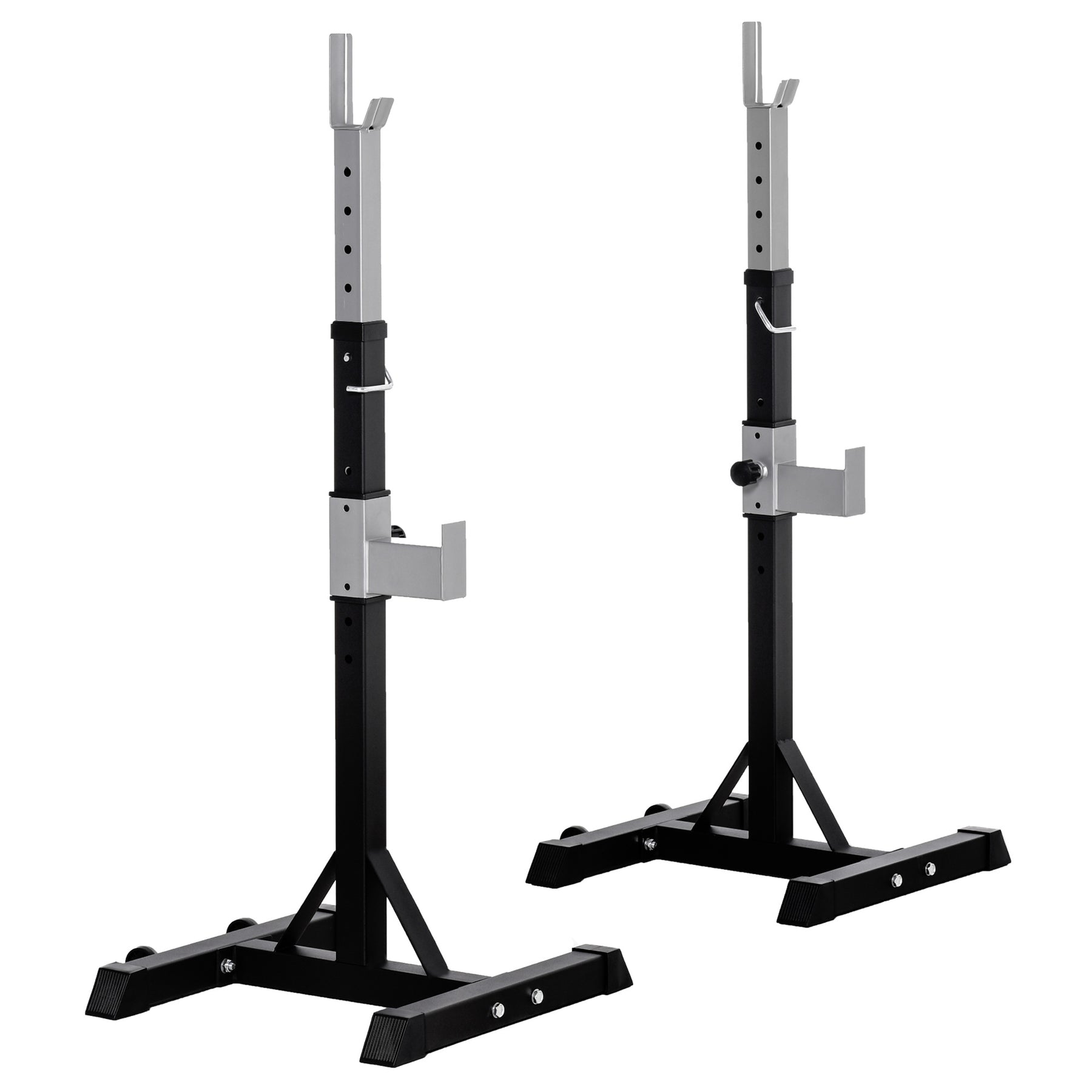 Want to improve flexibility and circulation and to enhance muscle strength? Try out this HOMOCM barbell rack for home or office! this pair of high-quality half rack made of heavy-duty steel frame for durability, our gym rack can support up to 10kg weight. The rack height can be adjusted to fit each person's height. Sturdy "H" bases provide excellent stability during workouts. Anti-slip rubber end covers provide grip for added stability and protect the floor from scuffs and scratches.