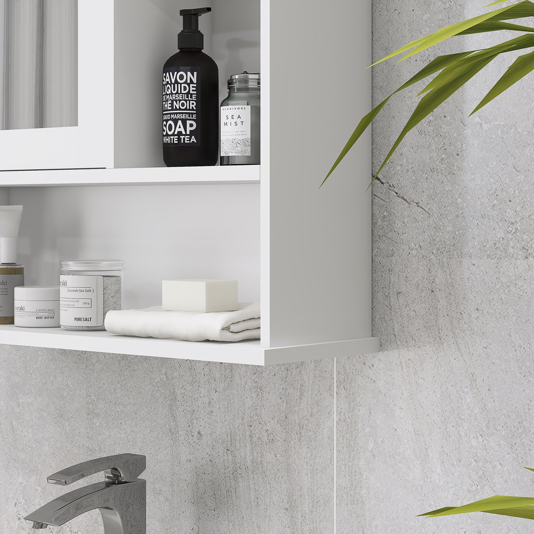 MCL Bathroom Cabinet, Wall Mount Storage Organizer with Mirror, Adjustable Shelf for Bathroom, Kitchen, Bedroom, White