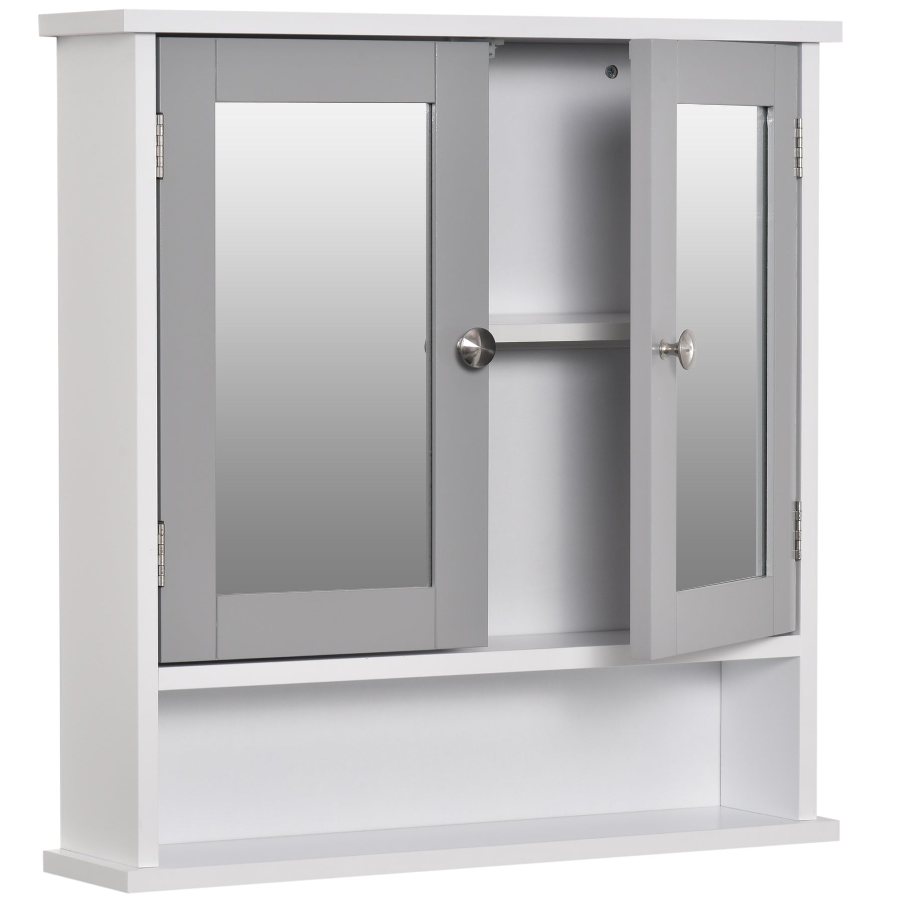 An everyday spot to get ready starts with this MCL bathroom cabinet. As well as space to keep products, cosmetics, toiletries and more safely stored inside, it features two small front mirrors for easily getting ready. The inner adjustable shelf creates room for larger items when needed, with the bottom open shelf for even easier easy access. It's finished with polished metal door handles.