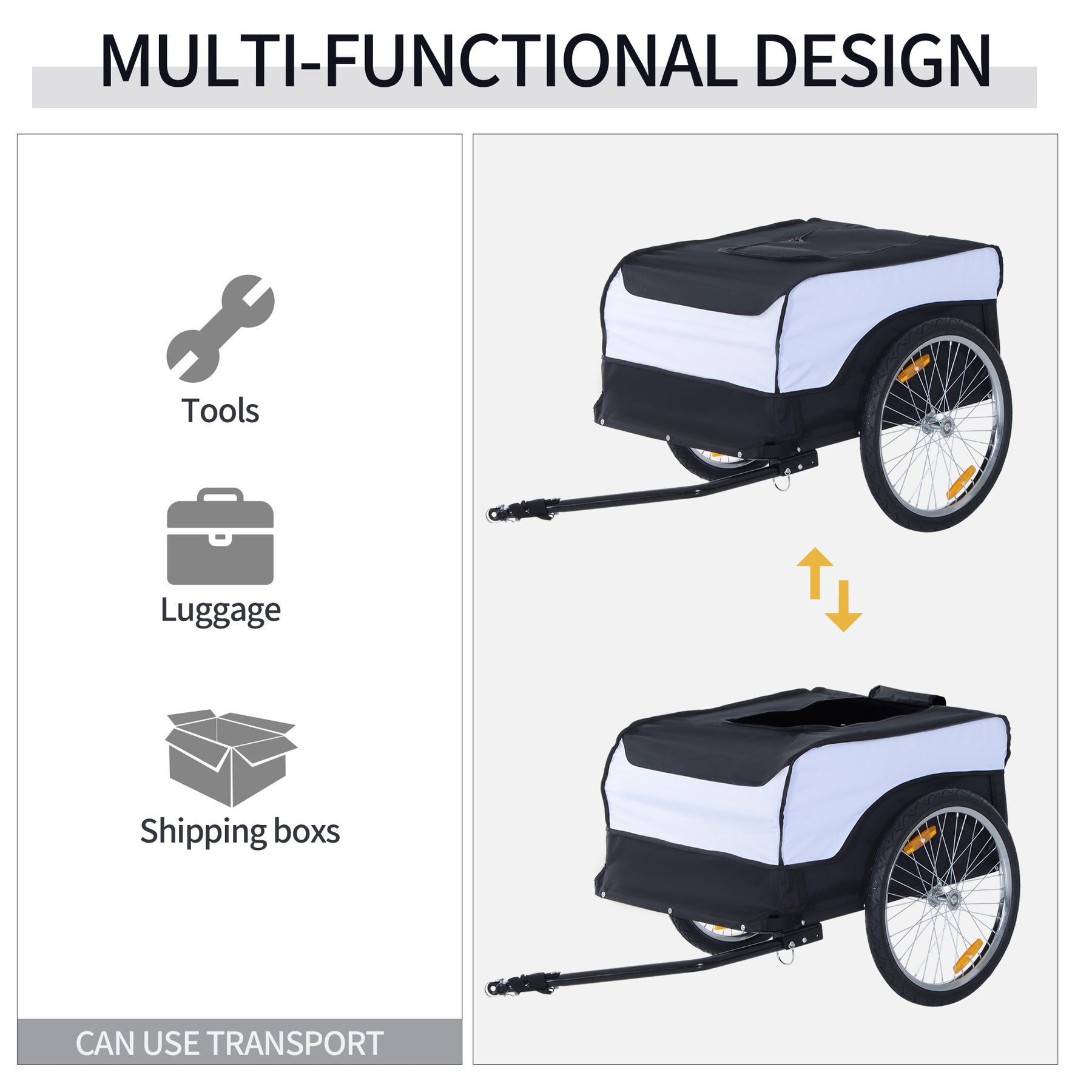 MCL Bike Trailer Cargo in Steel Frame Extra Bicycle Storage Carrier with Removable Cover and Hitch (White and Black)